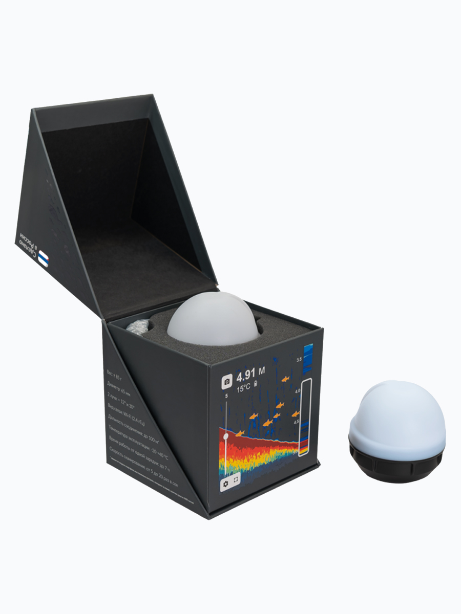 Включить эхолот можно двумя способами – автоматически от воды, либо с помощью специального магнита, входящего в комплектацию.