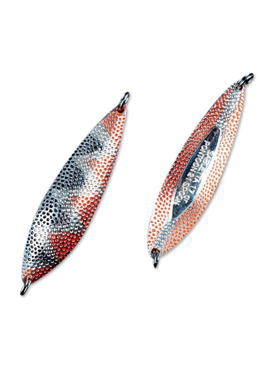 Блесны 3D spoon выполнены в лучших традициях этого класса приманок, но также имеют уникальные качества. Они изготовлены из латуни и имеют покрытие из золота 24К или настоящего серебра. В этих классических приманках реализована оригинальная идея Deep Dot Design. Заключается она в том, что вся поверхность блесны состоит из маленьких, беспорядочно расположенных, углублений-точек. За счет этого основные колебания, создаваемые формой и объемом приманки, сопровождаются турбулентными микроколебаниями от завихрений воды в каждом из множества углублений.