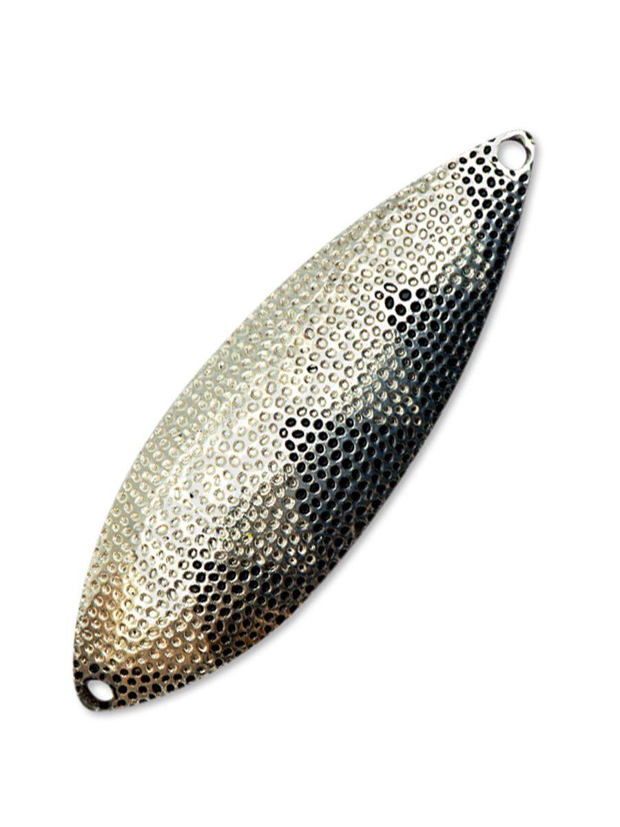 Блесны 3D spoon выполнены в лучших традициях этого класса приманок, но также имеют уникальные качества. Они изготовлены из латуни и имеют покрытие из золота 24К или настоящего серебра. В этих классических приманках реализована оригинальная идея Deep Dot Design. Заключается она в том, что вся поверхность блесны состоит из маленьких, беспорядочно расположенных, углублений-точек. За счет этого основные колебания, создаваемые формой и объемом приманки, сопровождаются турбулентными микроколебаниями от завихрений воды в каждом из множества углублений.