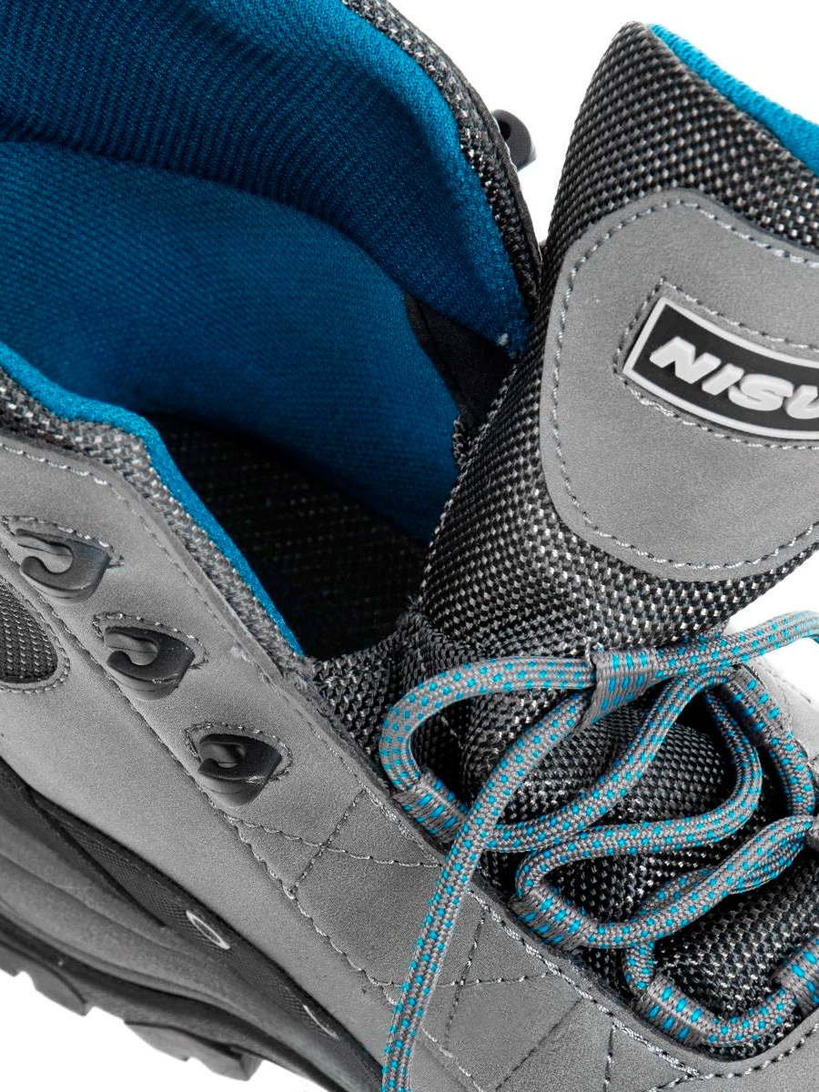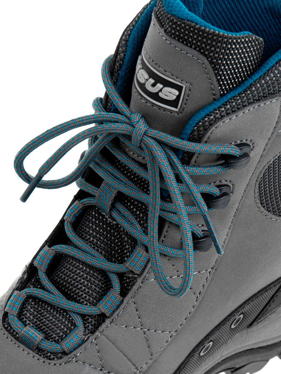 8. Система шнуровки: Петли из прочной стропы и металлические крючки на верхней части ботинка позволяют надежно зафиксировать ногу. Благодаря этому обувь сидит плотно, не натирая и не смещаясь при ходьбе. Износостойкие нейлоновые шнурки обеспечивают необходимую фиксацию и регулировку по объему ноги.