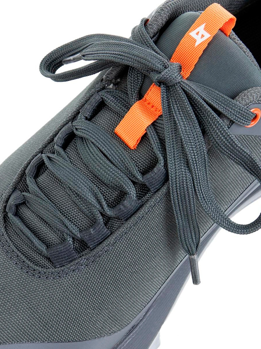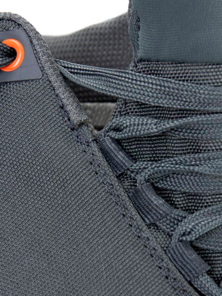 6. Система шнуровки: Петли в зоне язычка из прочной стропы, металлическое кольцо-люверс и прочные нейлоновые шнурки гарантируют плотную и удобную посадку по ноге, а пяточная петля значительно упрощает процесс надевания кроссовок.