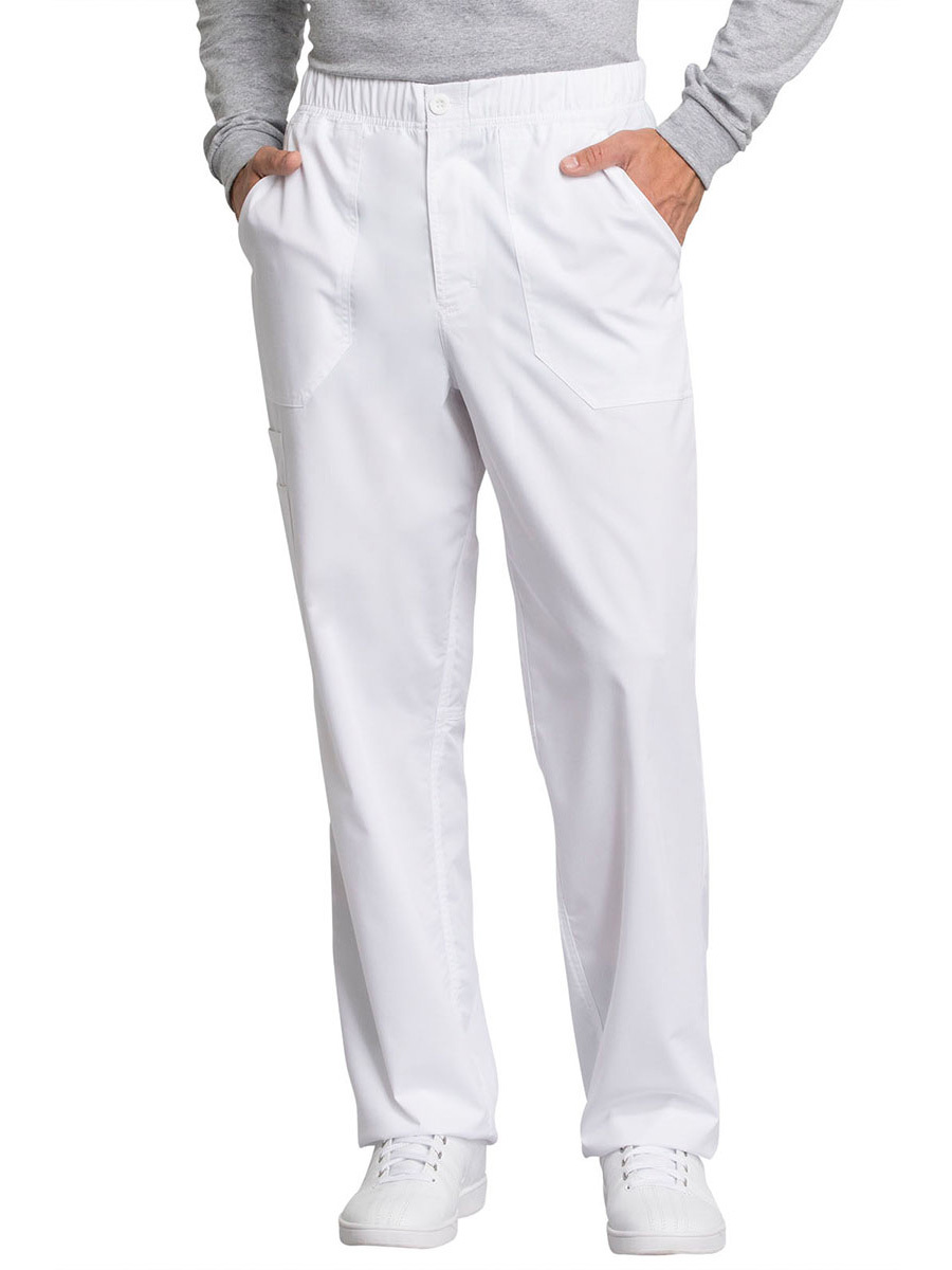 Эти свободные прямые брюки подарят вам свободу движения и комфорт даже во время самых напряжённых смен. Мягкий пояс на резинке дополнительно застёгивается на пуговицу и снабжён