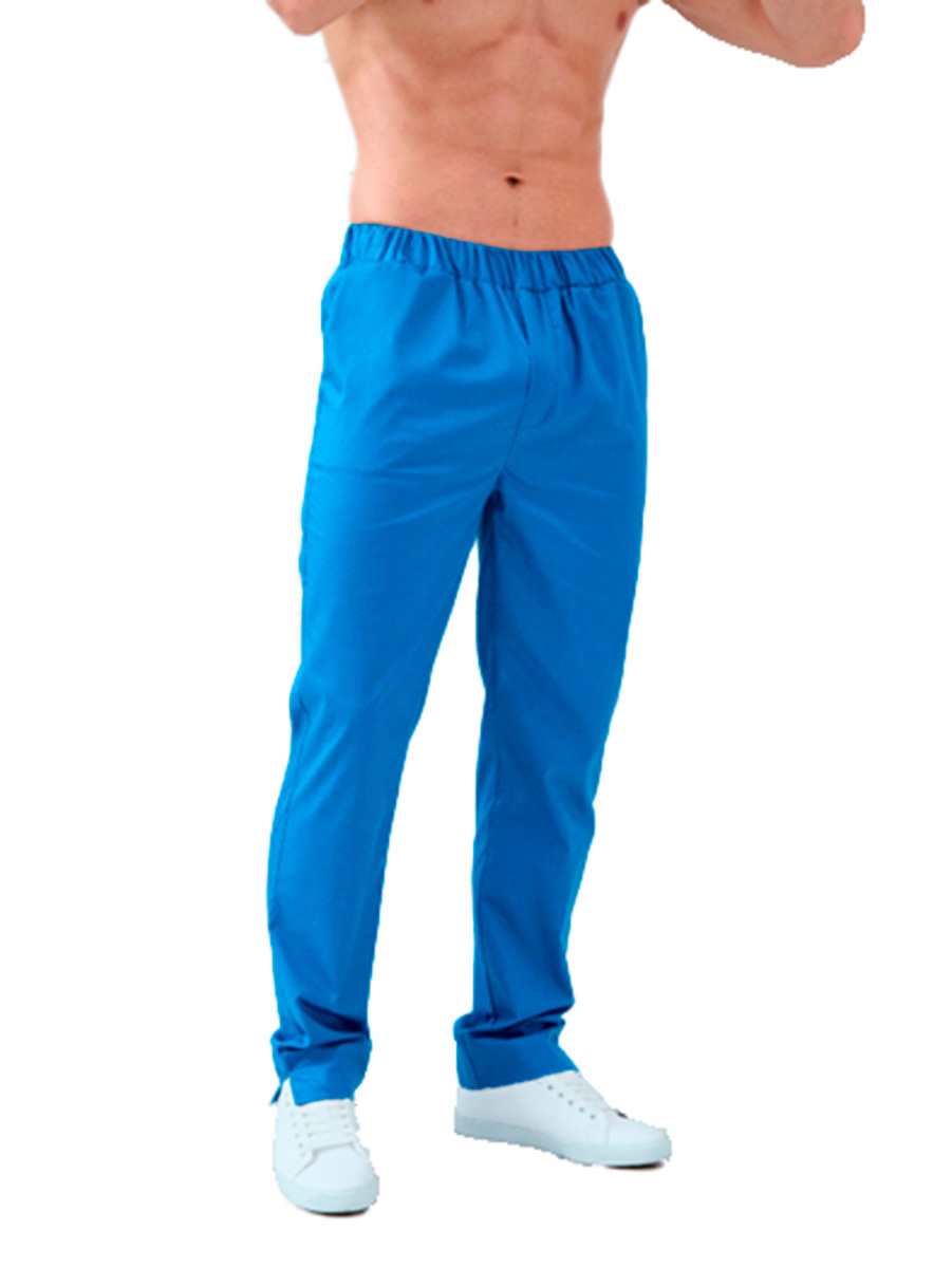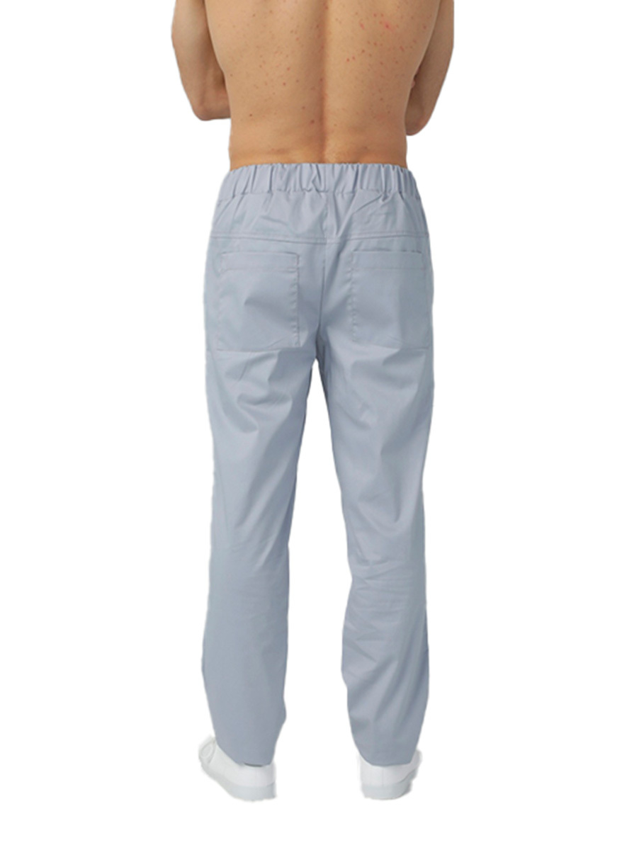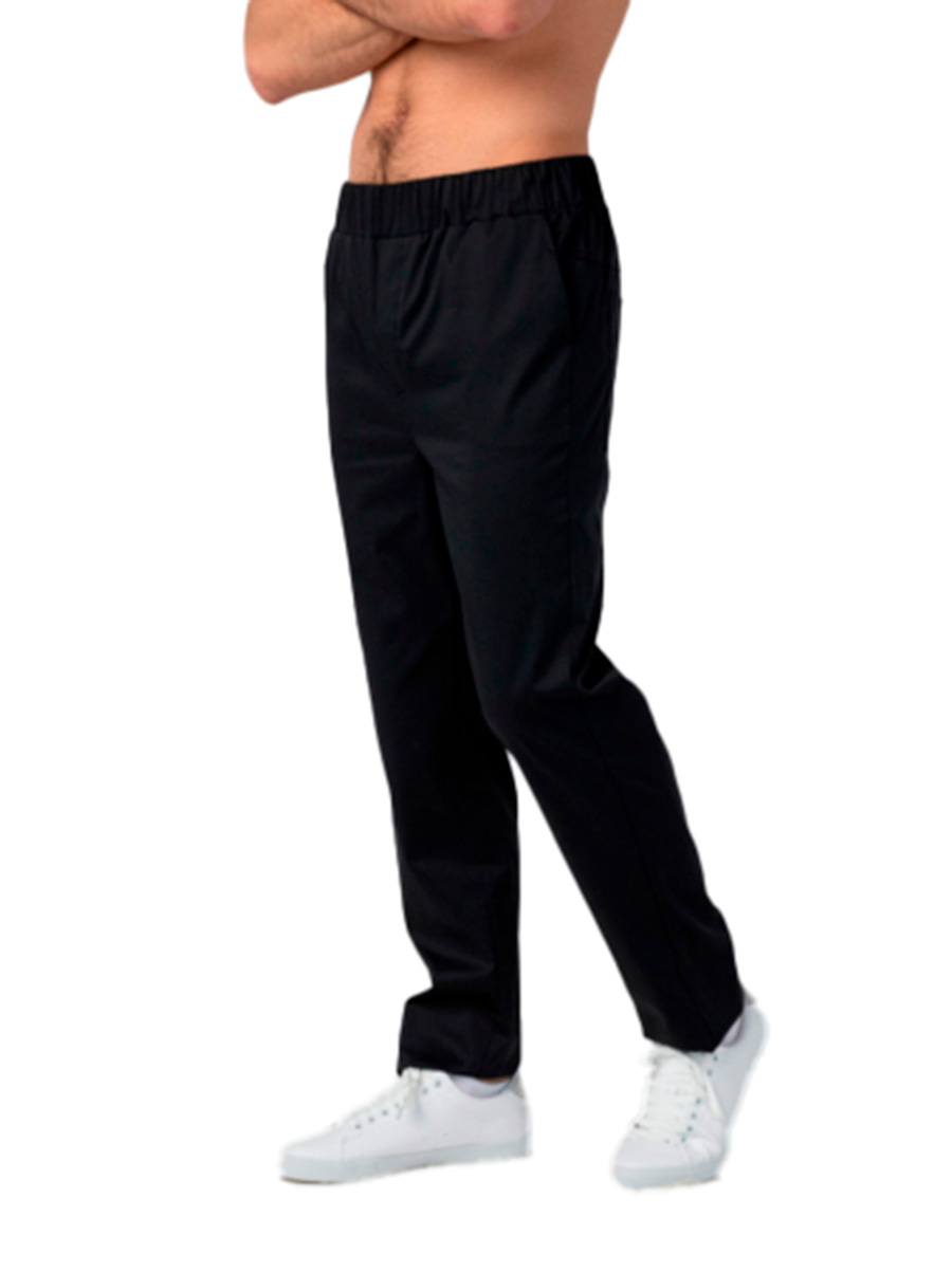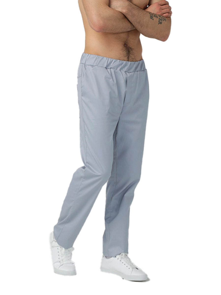 Мужские брюки от бренда Dr.Nice имеют прямой крой, эластичный пояс на резинке, накладные карманы и разрезы в боковых швах снизу.