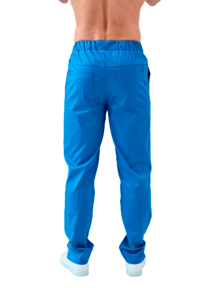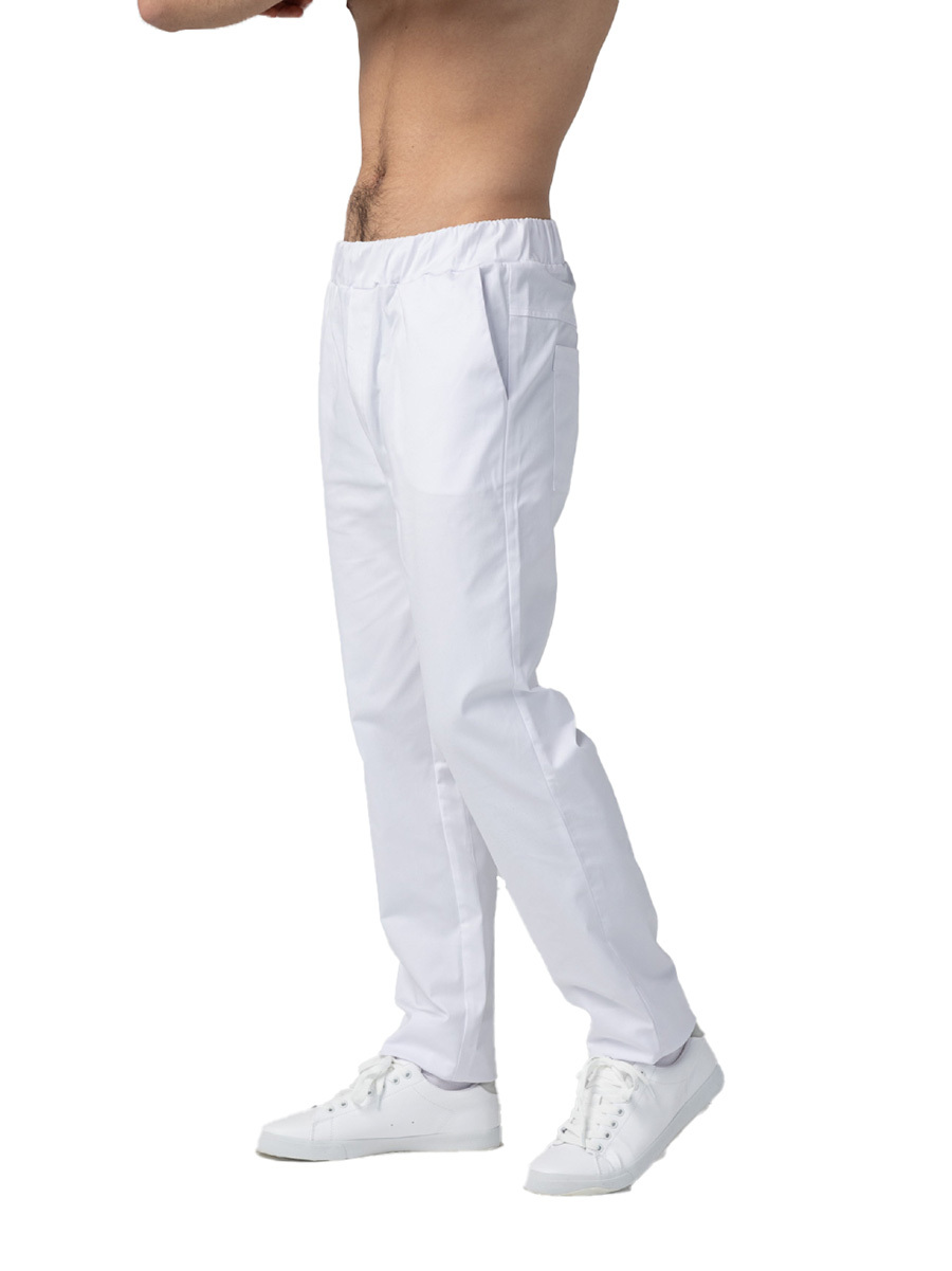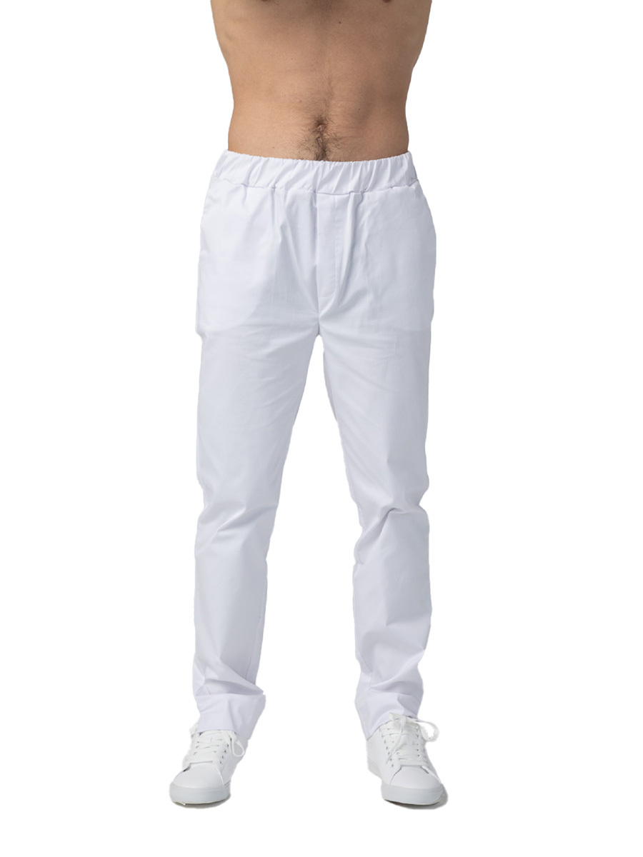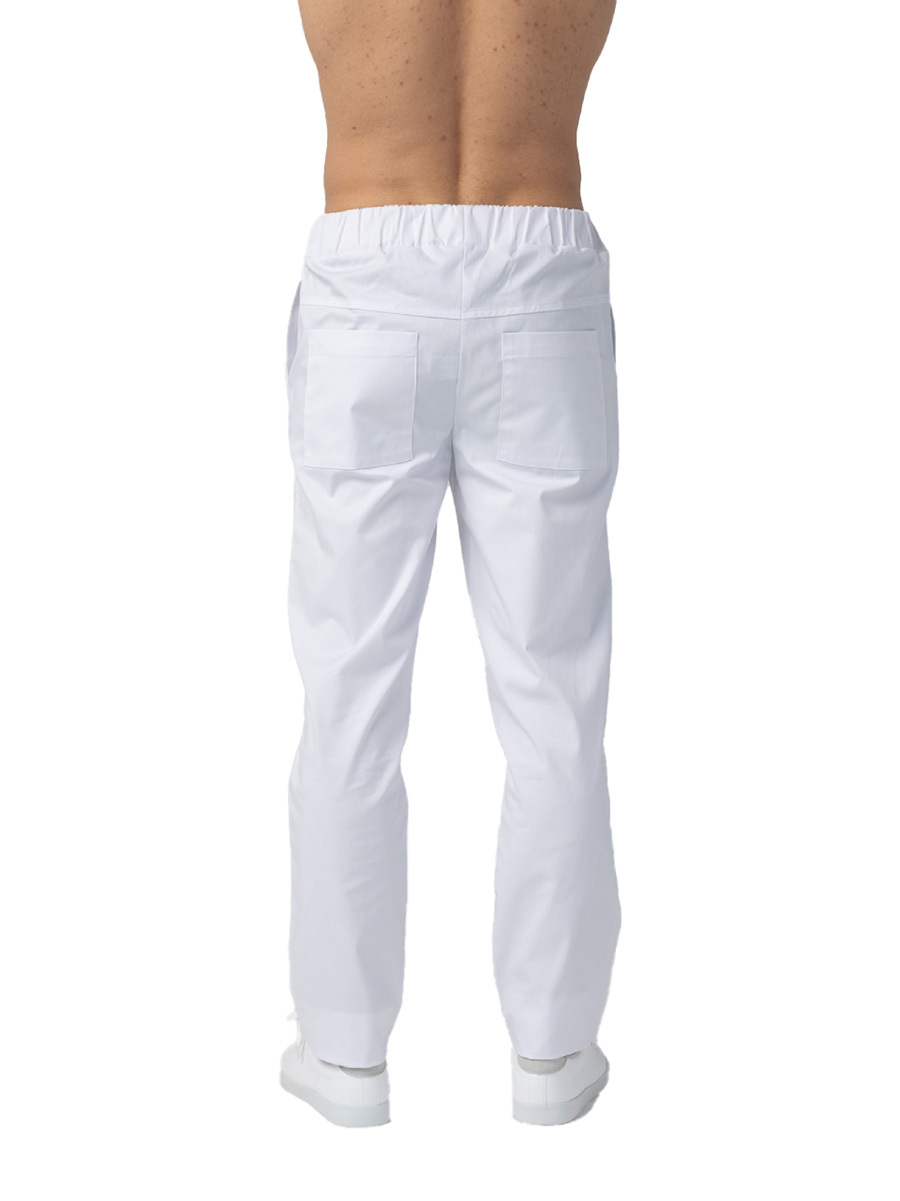 Мужские брюки от бренда Dr.Nice имеют прямой крой, эластичный пояс на резинке, накладные карманы и разрезы в боковых швах снизу.