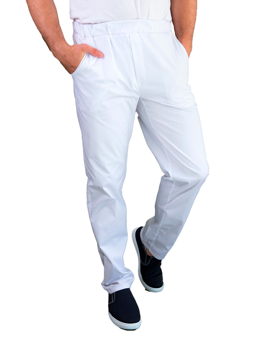 Мужские медицинские брюки TZ615 имеют прямой силуэт и эластичный пояс, благодаря этому они идеально садятся по фигуре. Модель дополняют два боковых и два задних кармана. Прочный и дышащий материал, из которого сшиты брюки, обеспечивает комфортные ощущения от формы в течение рабочего дня.