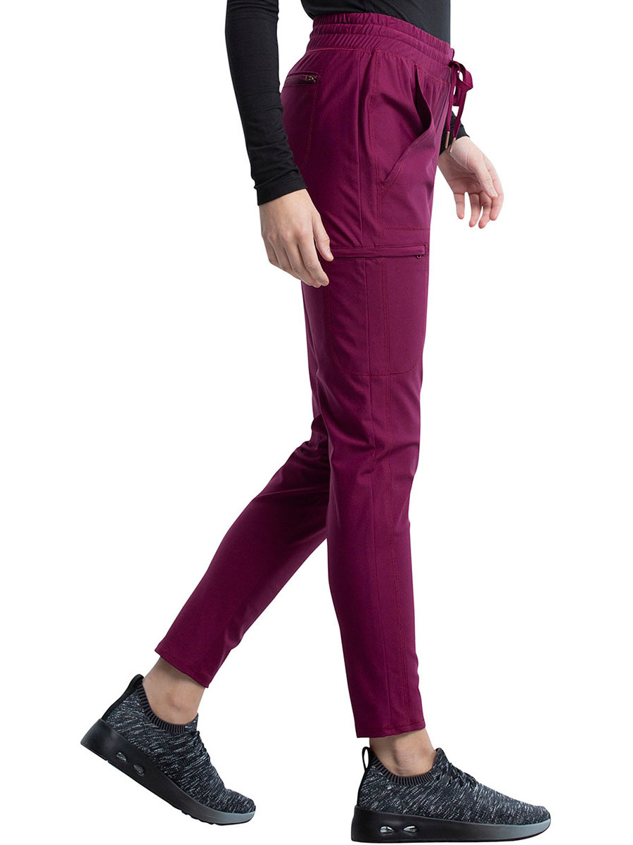 Женские брюки Cherokee CK095 выполнены в современном крое со средней посадкой. Модель имеет прошитый несколькими иглами эластичный пояс с кулиской и пять карманов: два передних угловых, один грузовой на молнии и два задних накладных на молнии.