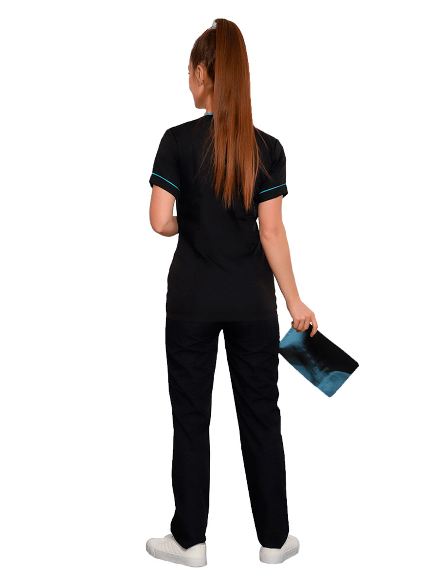 Женские медицинские брюки модели 455 имеют прямой силуэт, зауженный книзу, сидят точно по фигуре. Изделие дополнено удобным широким поясом-резинкой.