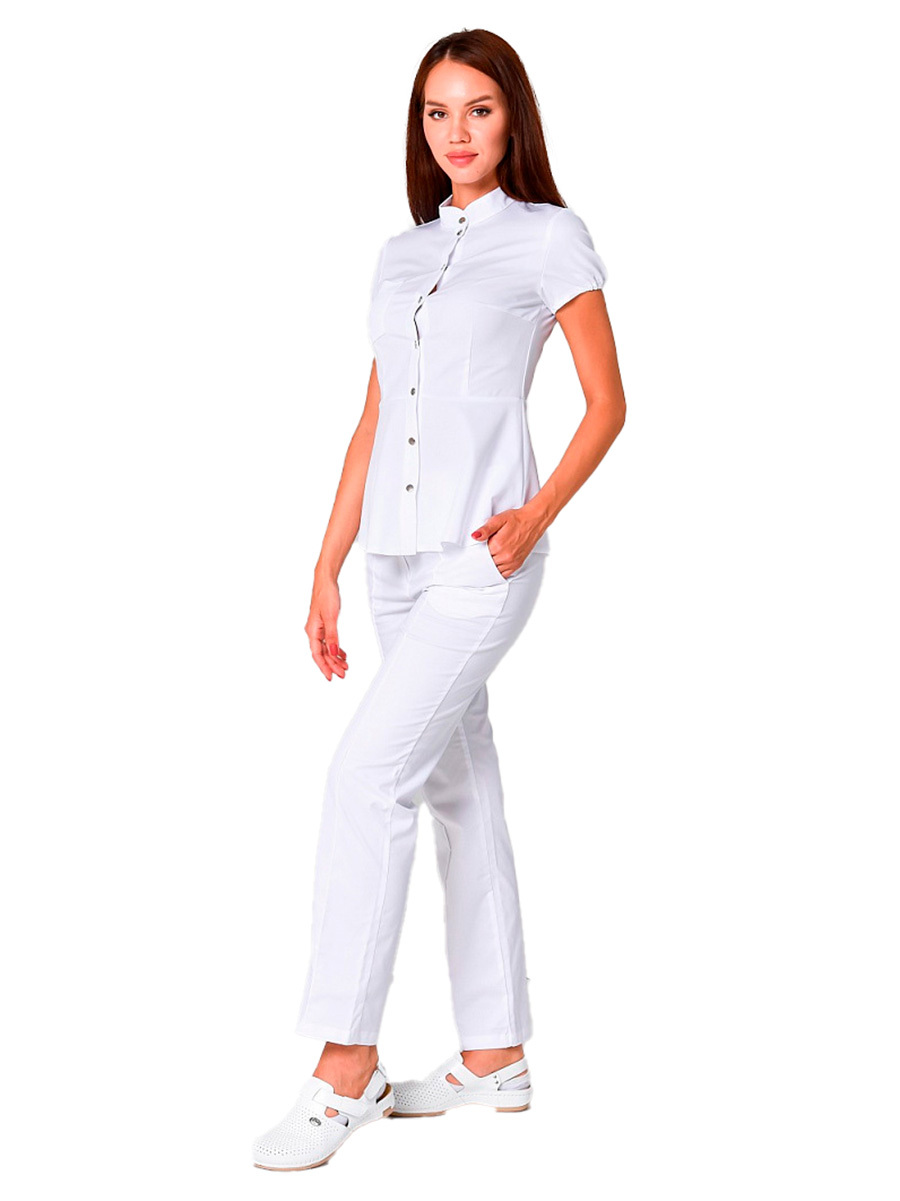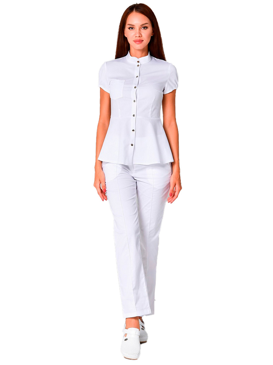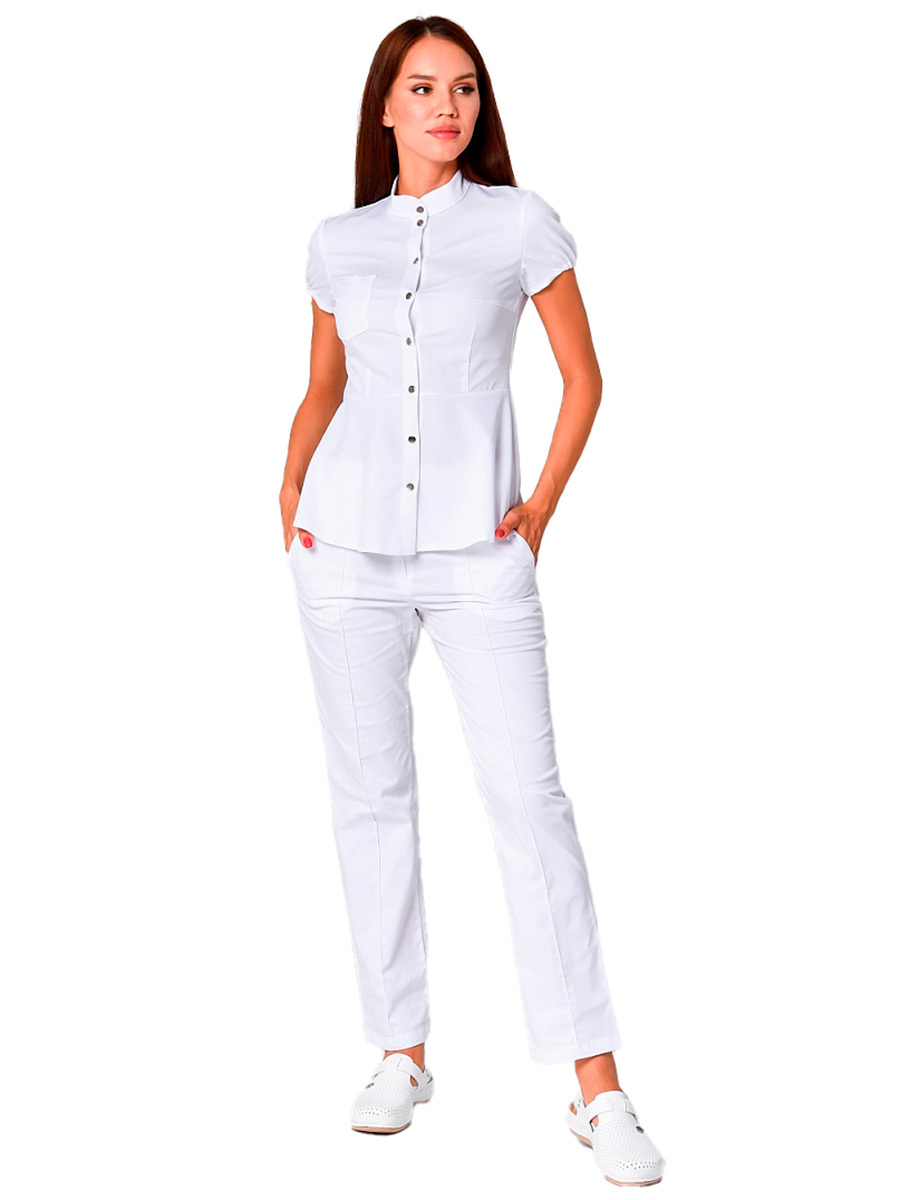 Женские медицинские брюки бренда Mariita имеют прямой фасон. Модель дополнена боковыми карманами и стрелками, которые делают образ более строгим и элегантным.