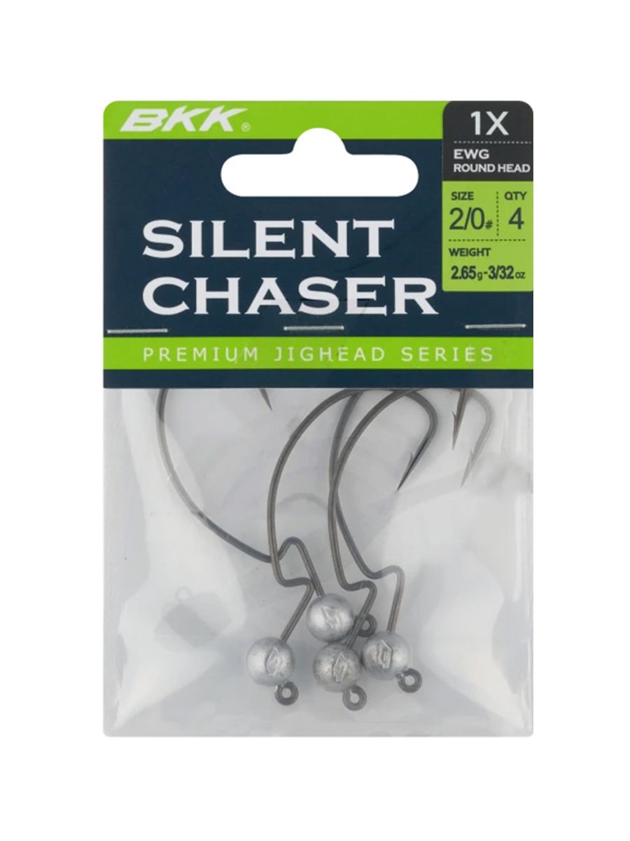 BKK Silent Chaser 1X EWG – это универсальная джигголовка на офсетном крючке, созданная для повышения проходимости при ловле в сложных местах, геометрия этой серии крючка имеет более широкое пространство между жалом и цевьем, а покрытие Super Slide обеспечит наилучшую реализацию поклевок при подсечке и долговечность.