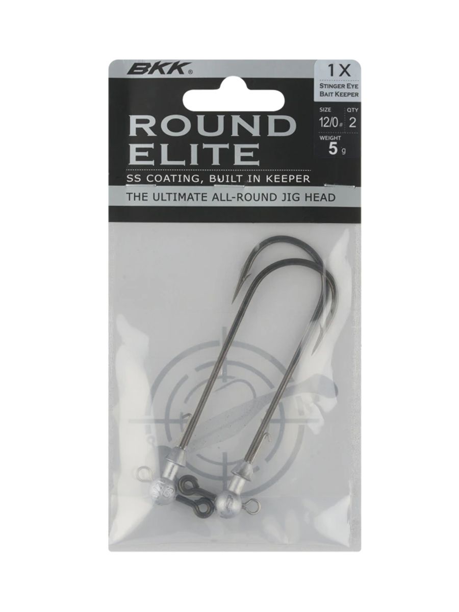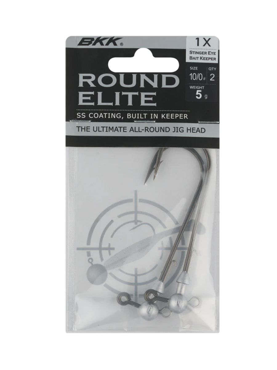 BKK Round Elite Stinger Eye Bait Keeper выпускается в широком диапазоне размеров и весов, чтобы соответствовать огромному ассортименту приманок. Это универсальная джигголовка, отлитая на на крючке с безупречно острым жалом и покрытием Super Slide, также они оснащены фиксирующей проволокой для надежного удержания приманки и минимальных повреждений при монтаже. Головка так же имеет, в нижней части, дополнительное ушко, для размещения стингера или дополнительной огрузки.