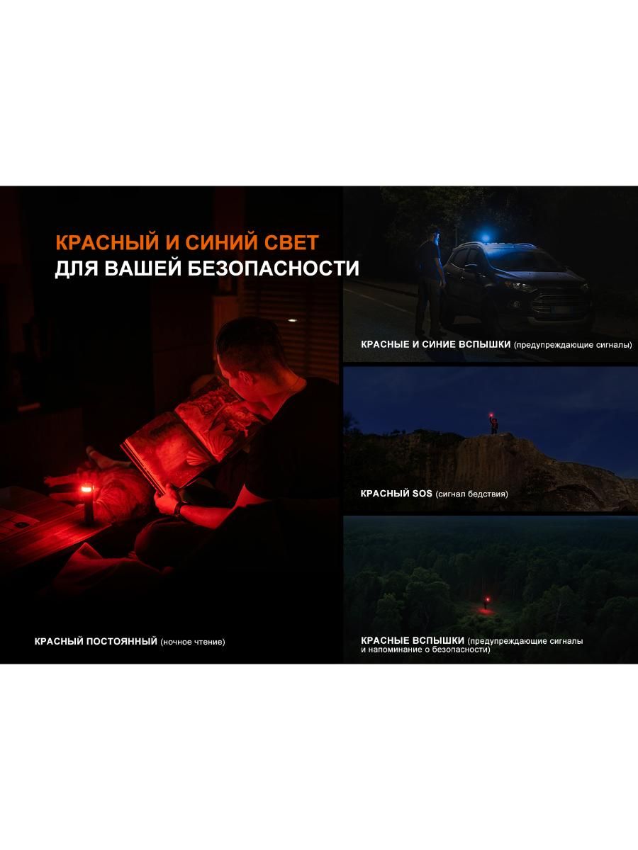 Красный/синий (вспышки) — 15 люменов — 31 часов 28 минут;