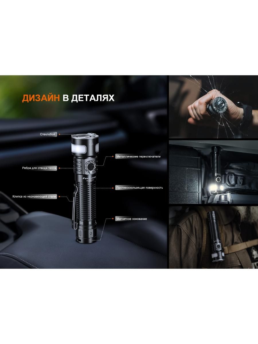 Дополнительно фонарь оснащен магнитным основанием для крепления на металлические поверхности, клипсой, удобным темляком и чехлом для переноски. В комплект входят также кабель USB-C, запасное уплотнительное кольцо. Благодаря своей мощности, надежности и универсальности Fenix LD35R станет отличным выбором для тех, кто ищет надежный фонарь на все случаи жизни.