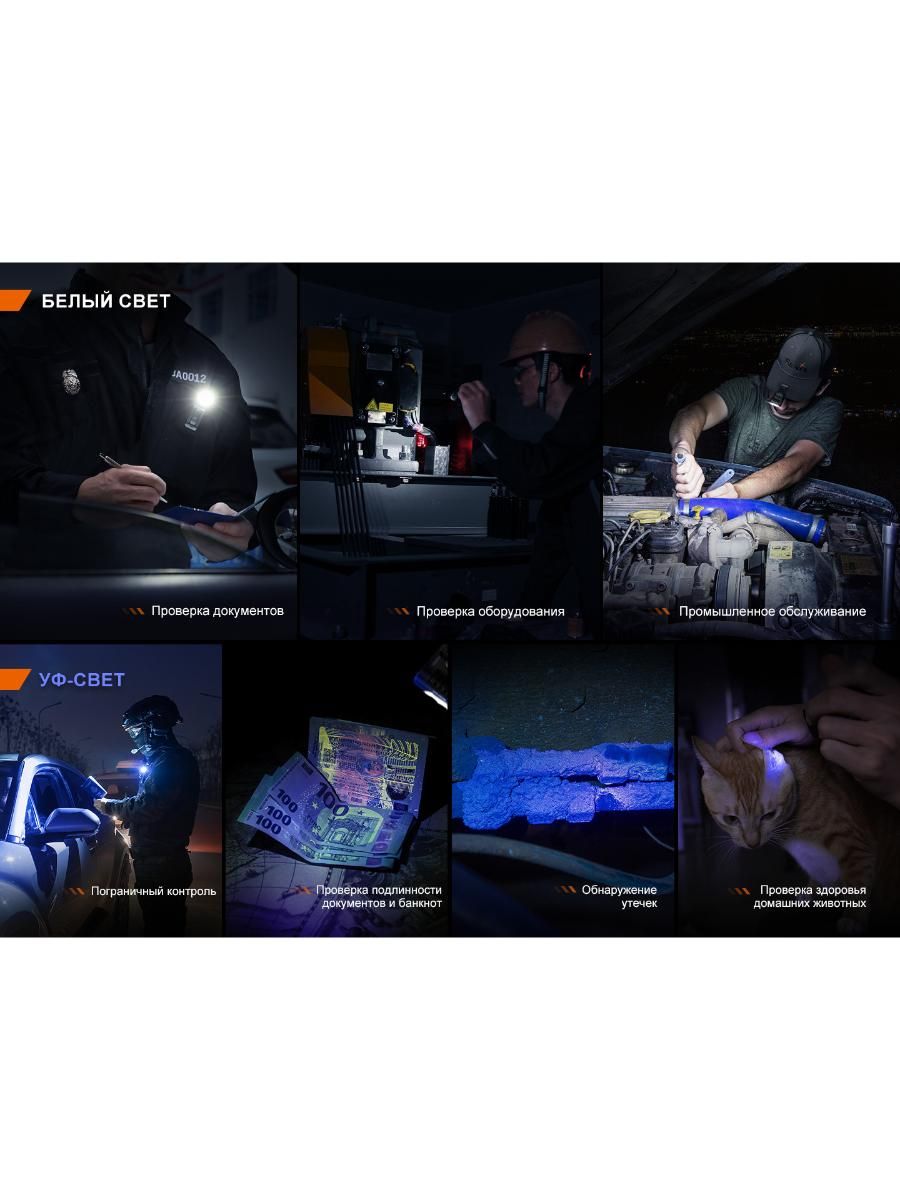 комплектация — фонарь Fenix SW05R-RED, кабель USB Type-C, руководство пользователя, гарантийный талон