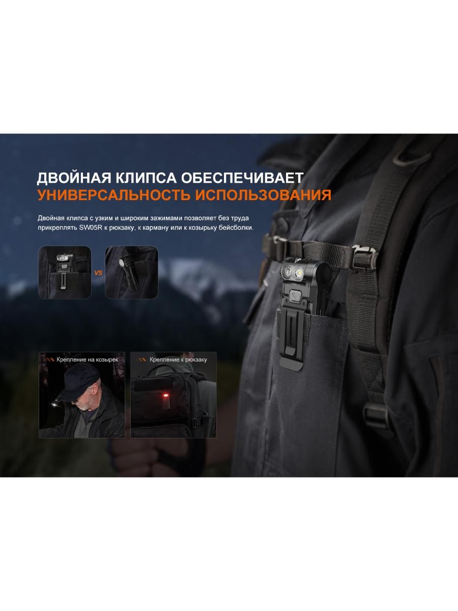 Fenix SW05R-RED — это надежное решение для освещения в любых ситуациях. Компактный, легкий и универсальный, он станет отличным выбором для туристов, спортсменов и любителей активного отдыха.