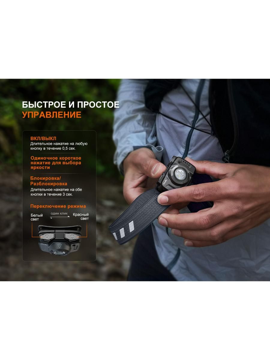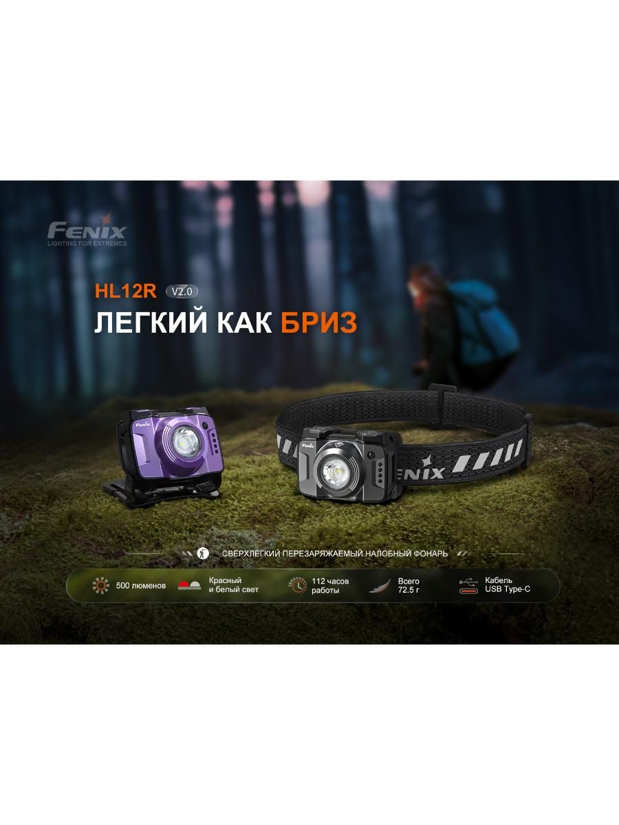 Fenix HL12R V2.0 — легкий и удобный налобный фонарь, который отлично подойдет для тренировок на открытом воздухе, бега, походов, кемпинга, рыбалки и охоты. Также пригодится для повседневного использования и ремонта. Регулируемый угол наклона позволяет точно настроить луч света, а легкий вес 72.5 г не утяжелит вашу экипировку, сделает тренировки и путешествия более комфортными.