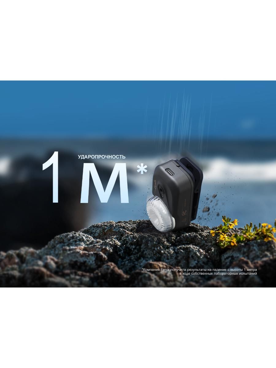 Благодаря защите стандарта IP66 фонарю не страшны пыль и мощные струи воды. Ударопрочный корпус выдерживает падение с высоты до 1 метра. Легкое и комфортное оголовье отлично распределяет давление при ношении и обеспечивает ощущение невесомости при активных нагрузках и тренировках.
