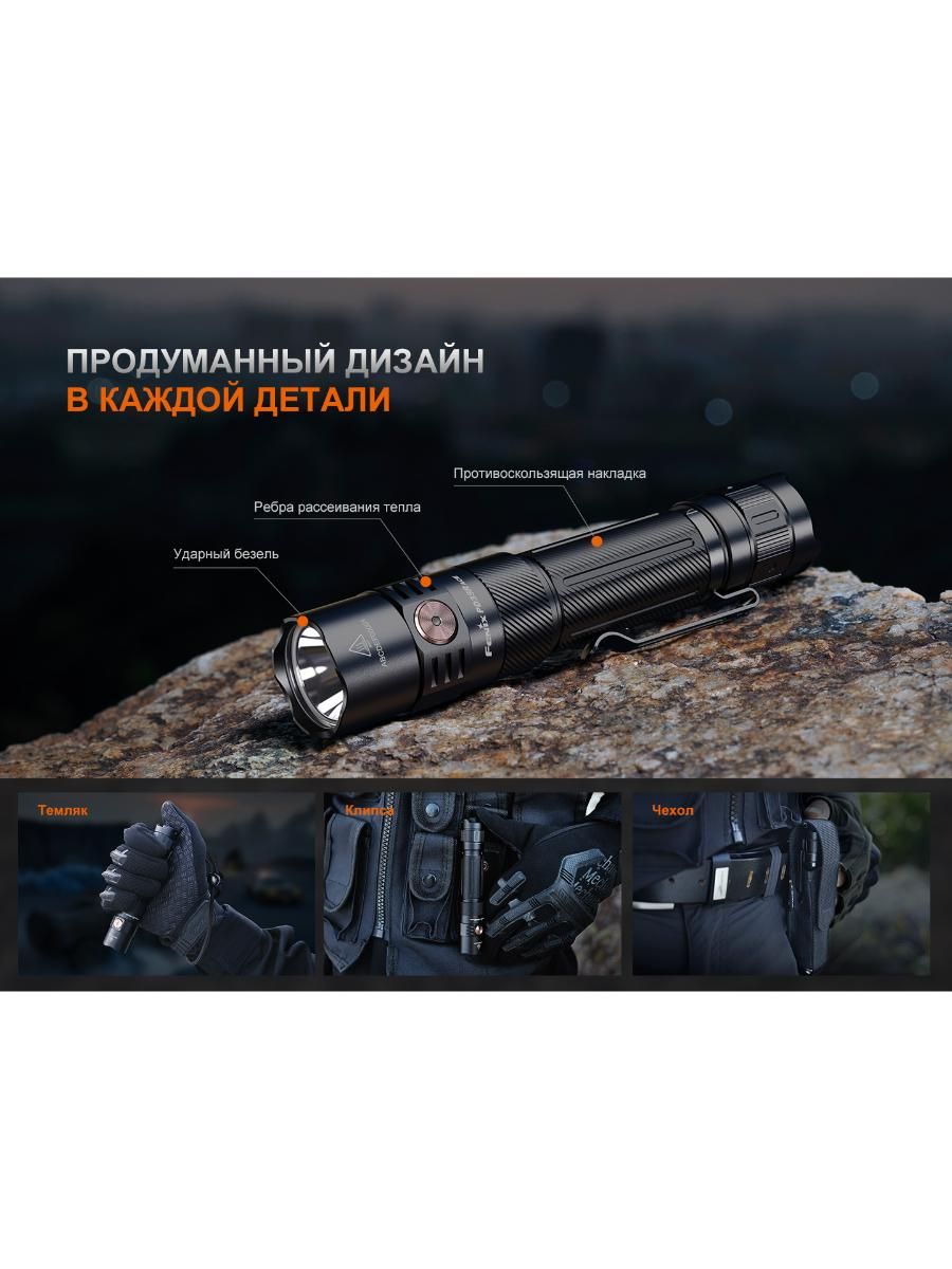 PD35R ACE имеет степень защиты IP68, полностью защищен от воды и пыли, выдерживает падения с высоты до 1,5 метра. Это один из самых продвинутых тактических фонарей в линейке Fenix, сочетающий высокую мощность, гибкое управление и долгую автономность.