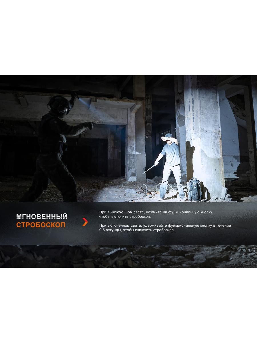 тактический переключатель на торце для мгновенного включения и активации строба,
