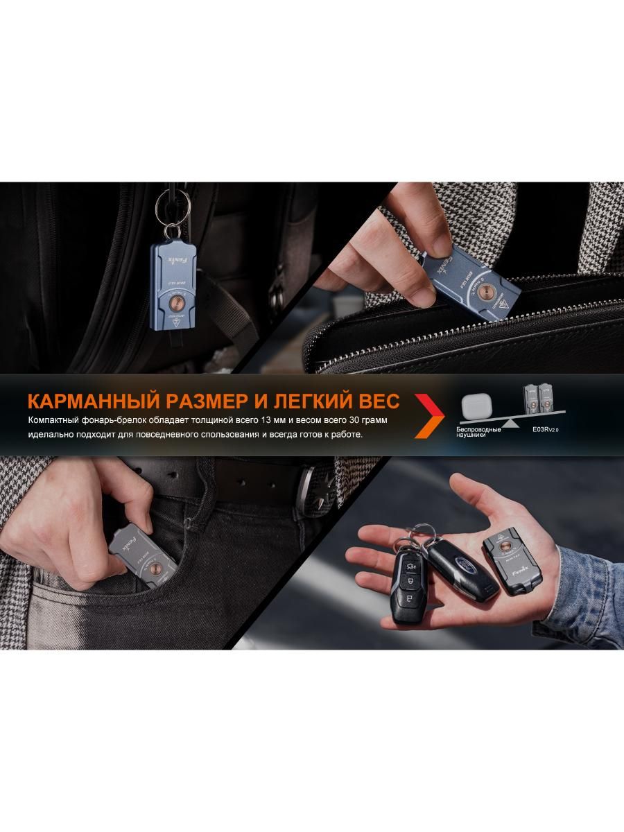 Комплектация: фонарь, аккумулятор, USB-C кабель, чехол, шнурок, 2 запасных уплотнительных кольца