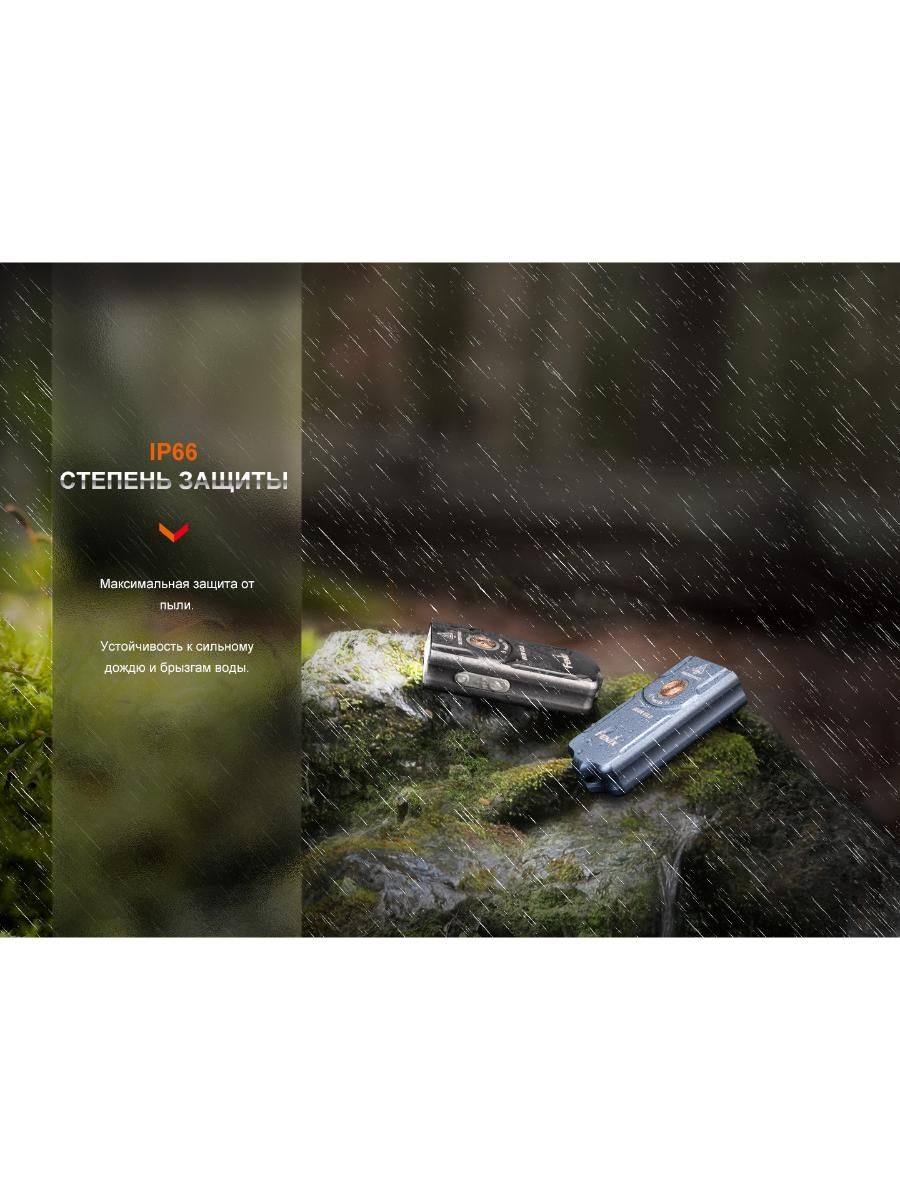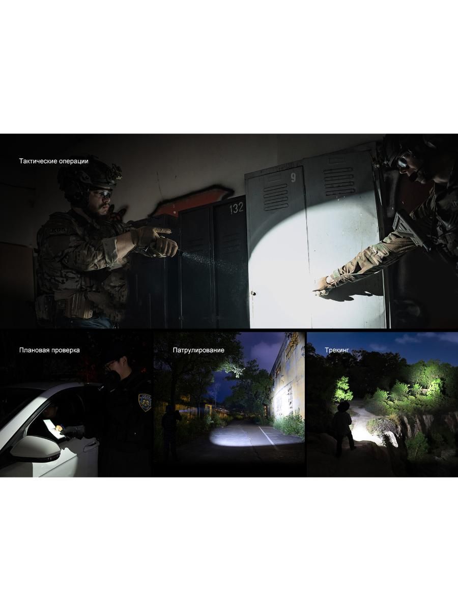 По степени защиты фонарь соответствует стандарту IP68, что означает полную пыленепроницаемость и устойчивость к погружению в воду. Корпус сделан из прочного алюминия A6061-T6 с анодированием HA III, способен выдерживать падения и интенсивную эксплуатацию.