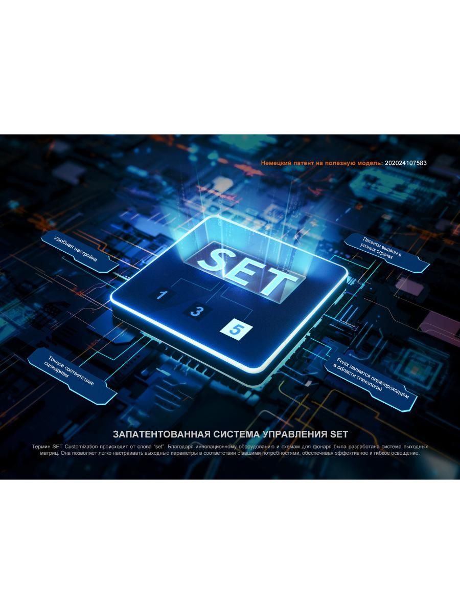 Главная особенность модели — режим SET, который позволяет пользователю выбрать один из трёх сценариев работы фонаря: