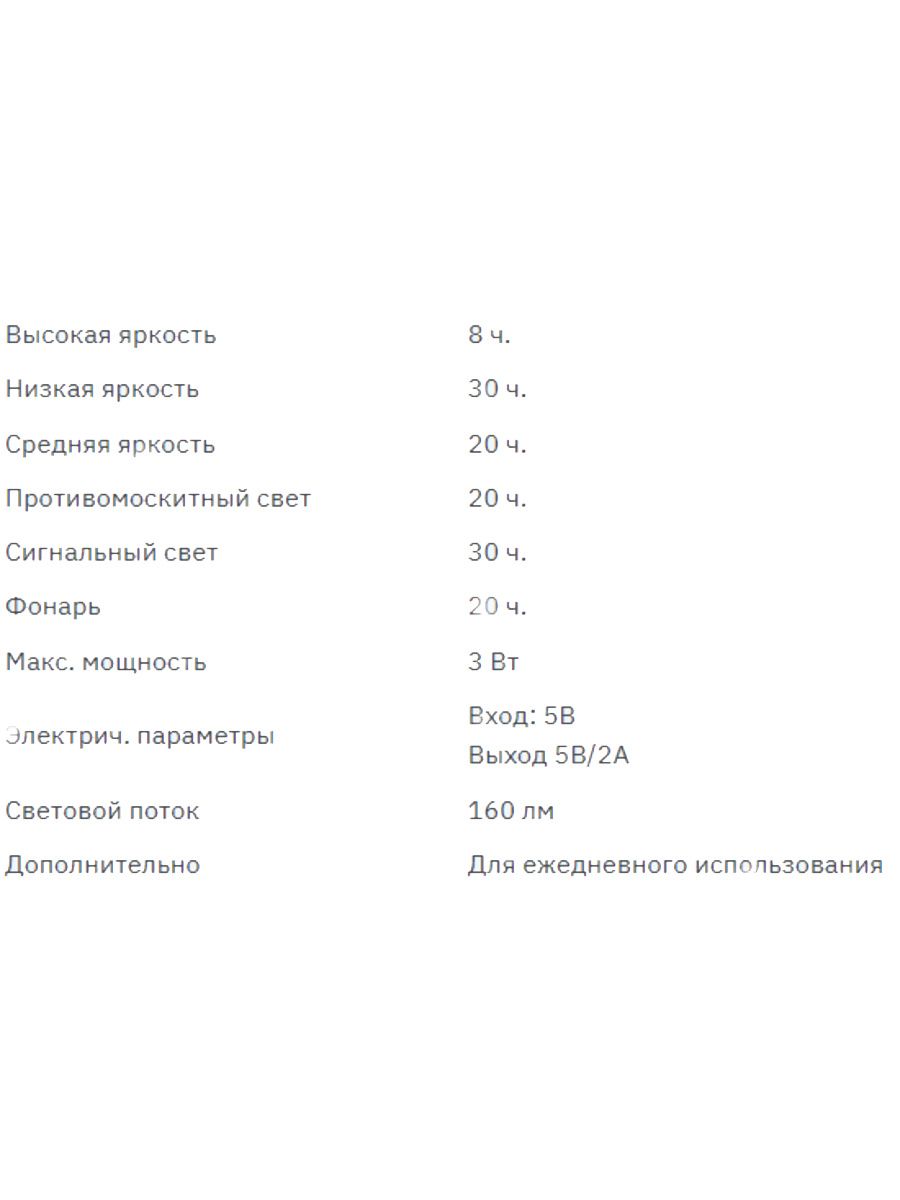 - мощная встроенная аккумуляторная батарея – 5200 мА/ч. При ярком уровне света и низкой температуре воздуха -15 0С время работы фонаря-лампы не менее 12 часов.