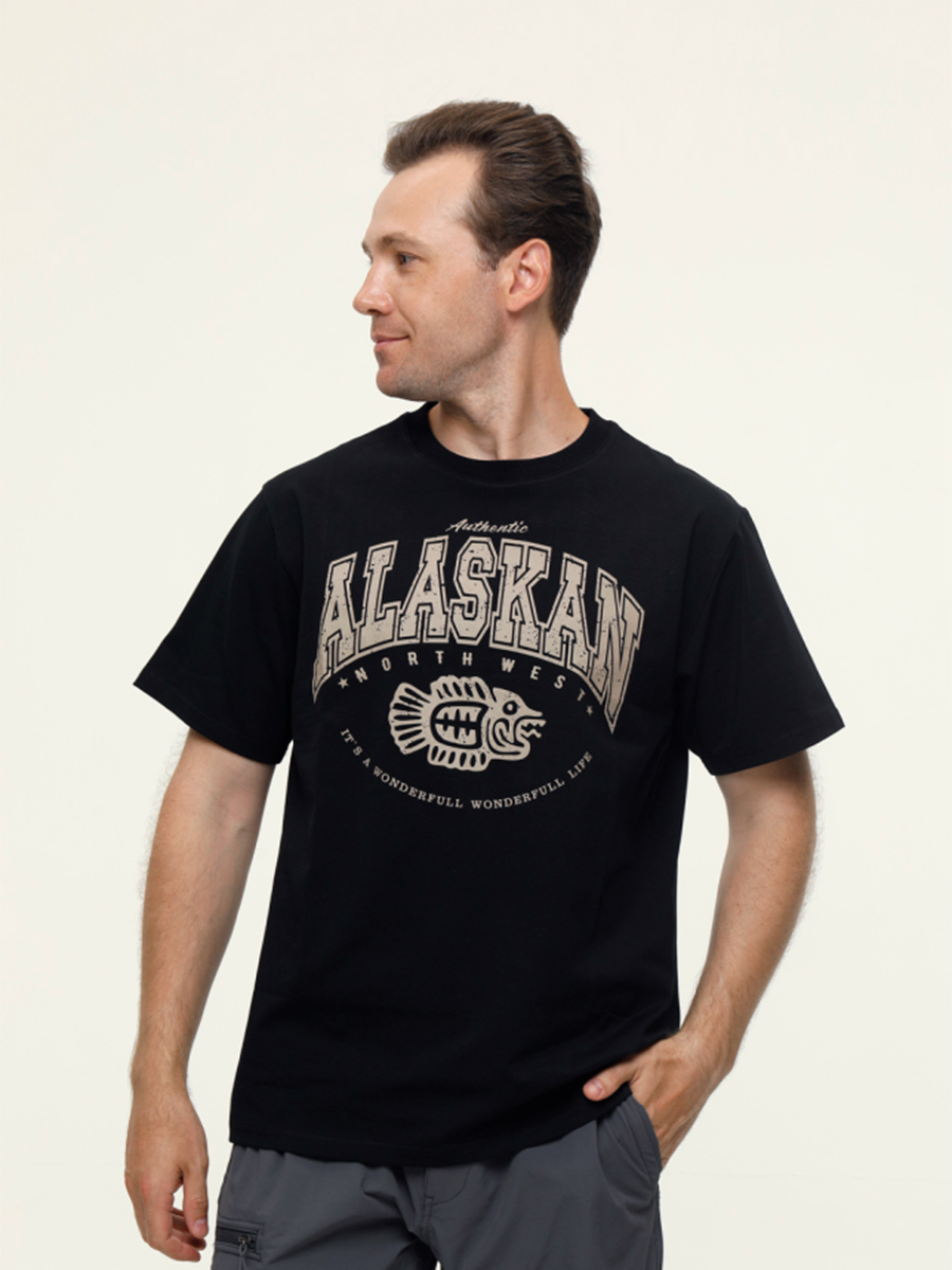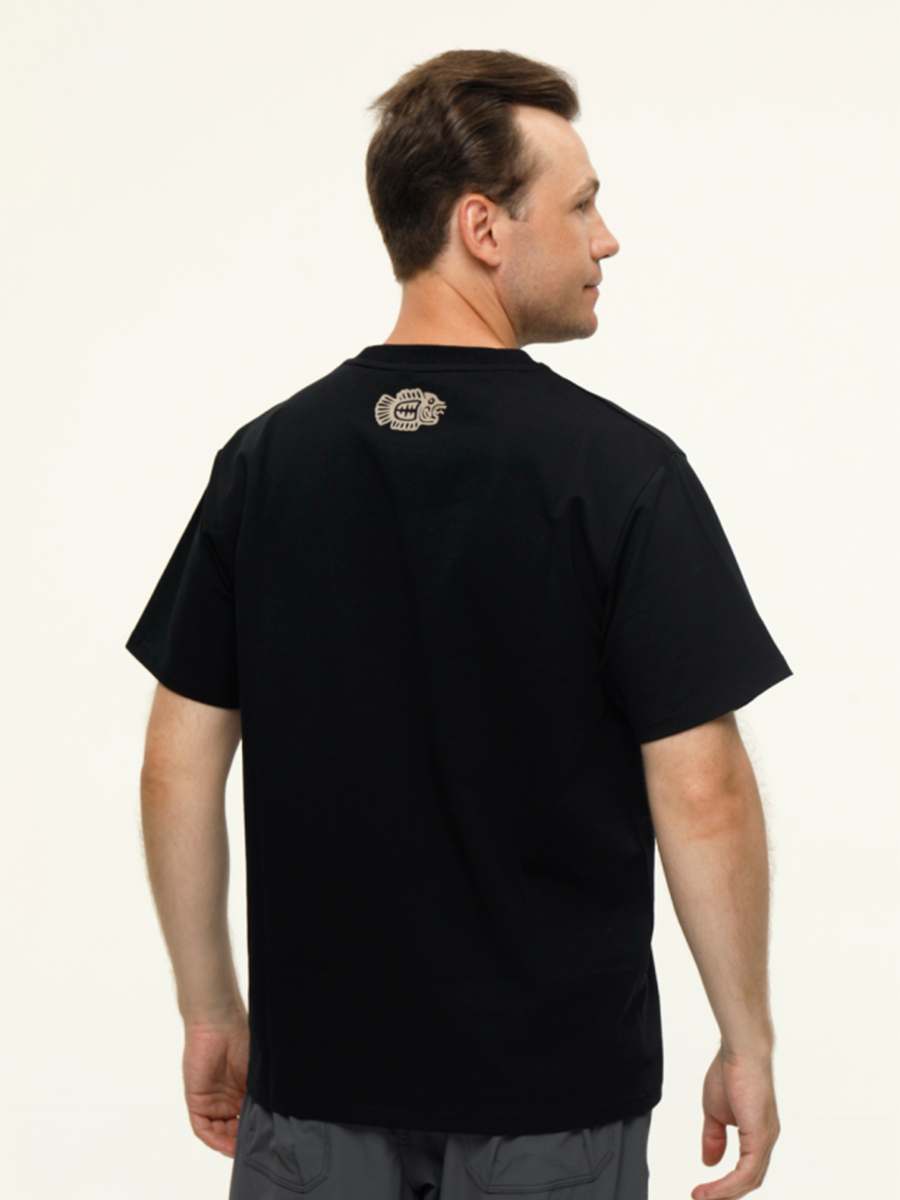 Модель представлена с круглой горловиной в прямом классическом силуэте. Принты на спине и груди придают футболке уникальность и яркость, делая её отличным вариантом для повседневной носки или активного отдыха.