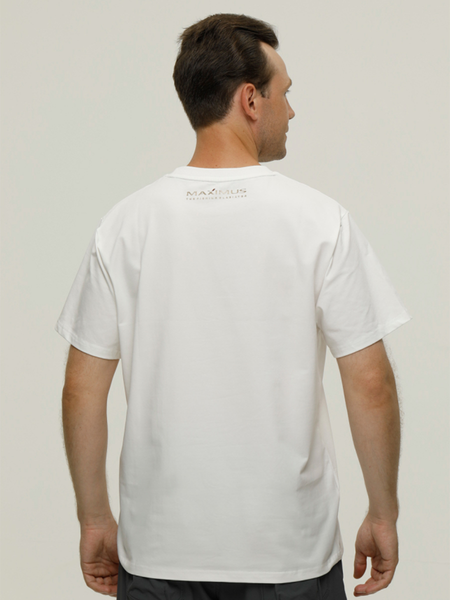 Модель представлена с круглой горловиной в прямом классическом силуэте. Принты на спине и груди придают футболке уникальность и яркость, делая её отличным вариантом для повседневной носки или активного отдыха.