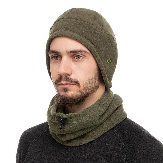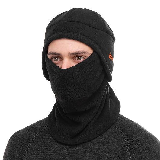 Шапка и бафф имеют анатомическую форму и плоские швы, за счет чего плотно прилегают к телу, сохраняя тепло и комфорт. Нижняя часть шапки, закрывающая лоб, уши и затылок сделана из двойного слоя флиса для дополнительной защиты от продувания. Бафф имеет шнур из эластичной резины с фиксатором для регулировки по объему.