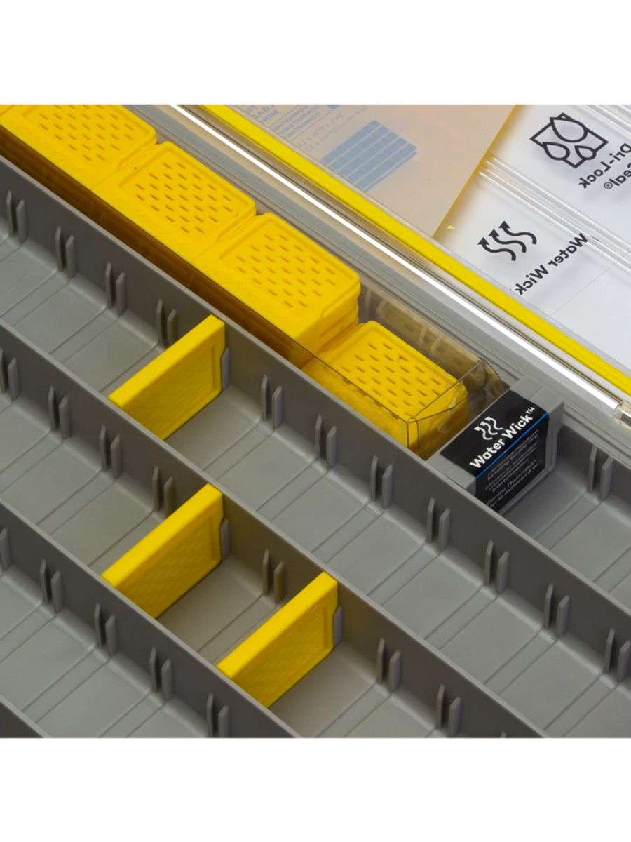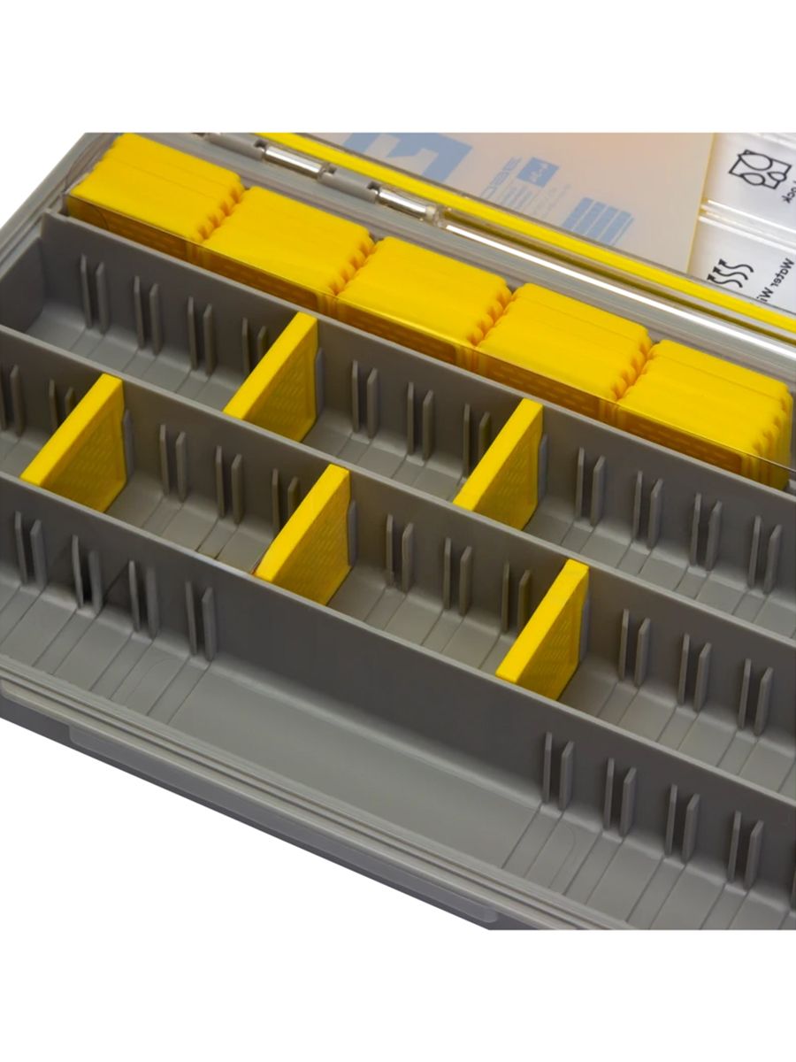 Прочность конструкции обеспечивается высококачественными компонентами: стальные штифтовые петли гарантируют долговечность изделия, а ребристое основание корпуса и крышки придает дополнительную надежность и устойчивость. Система разделителей Water Wick не только позволяет настроить внутреннее пространство под свои нужды, но и эффективно отводит влагу, значительно продлевая срок службы приманок.