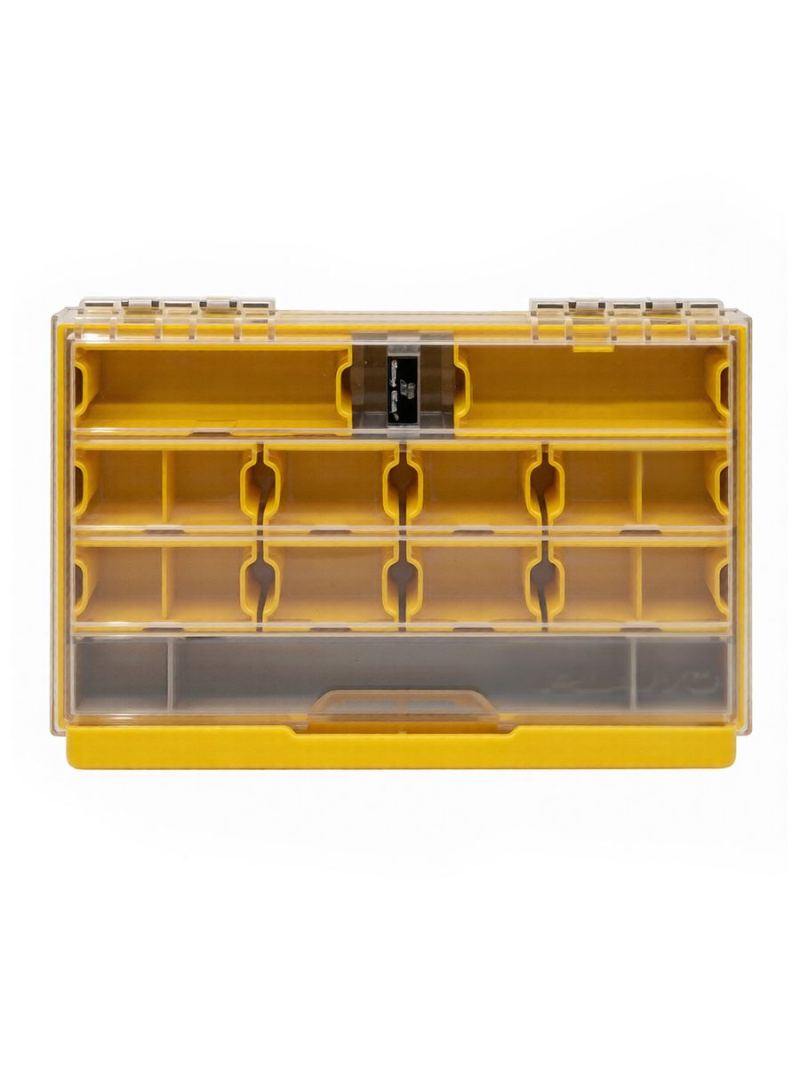 Прочный корпус выполнен из высококачественного пластика, обеспечивающего надежную защиту содержимого от ударов и других механических воздействий. Фирменная прозрачная крышка из поликарбоната DuraView дает возможность мгновенно оценить содержимое без необходимости открывать бокс. Эргономичная защелка спроектирована для удобного одноручного открывания, что особенно важно в полевых условиях.
