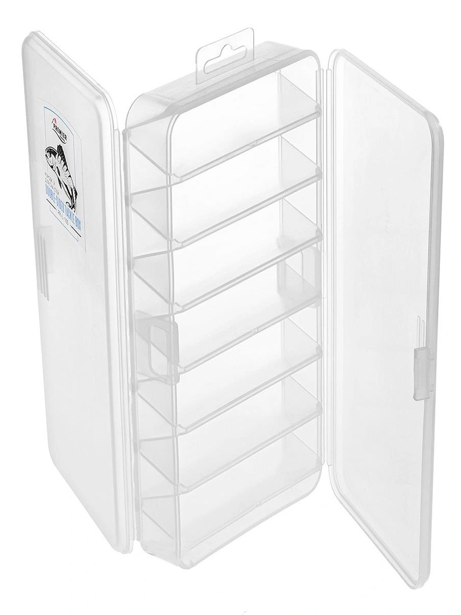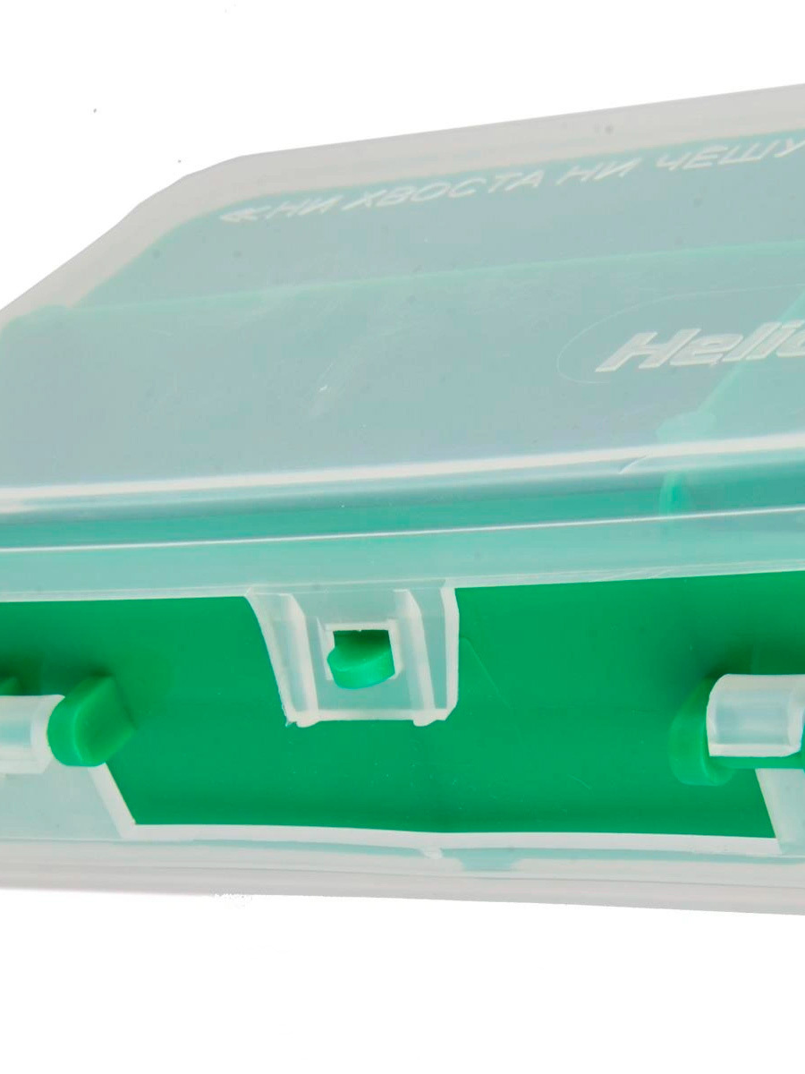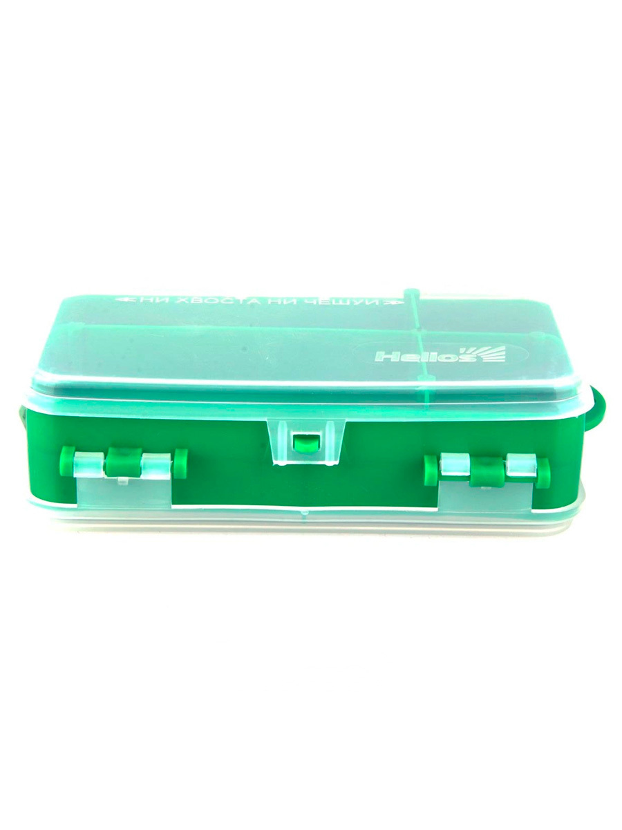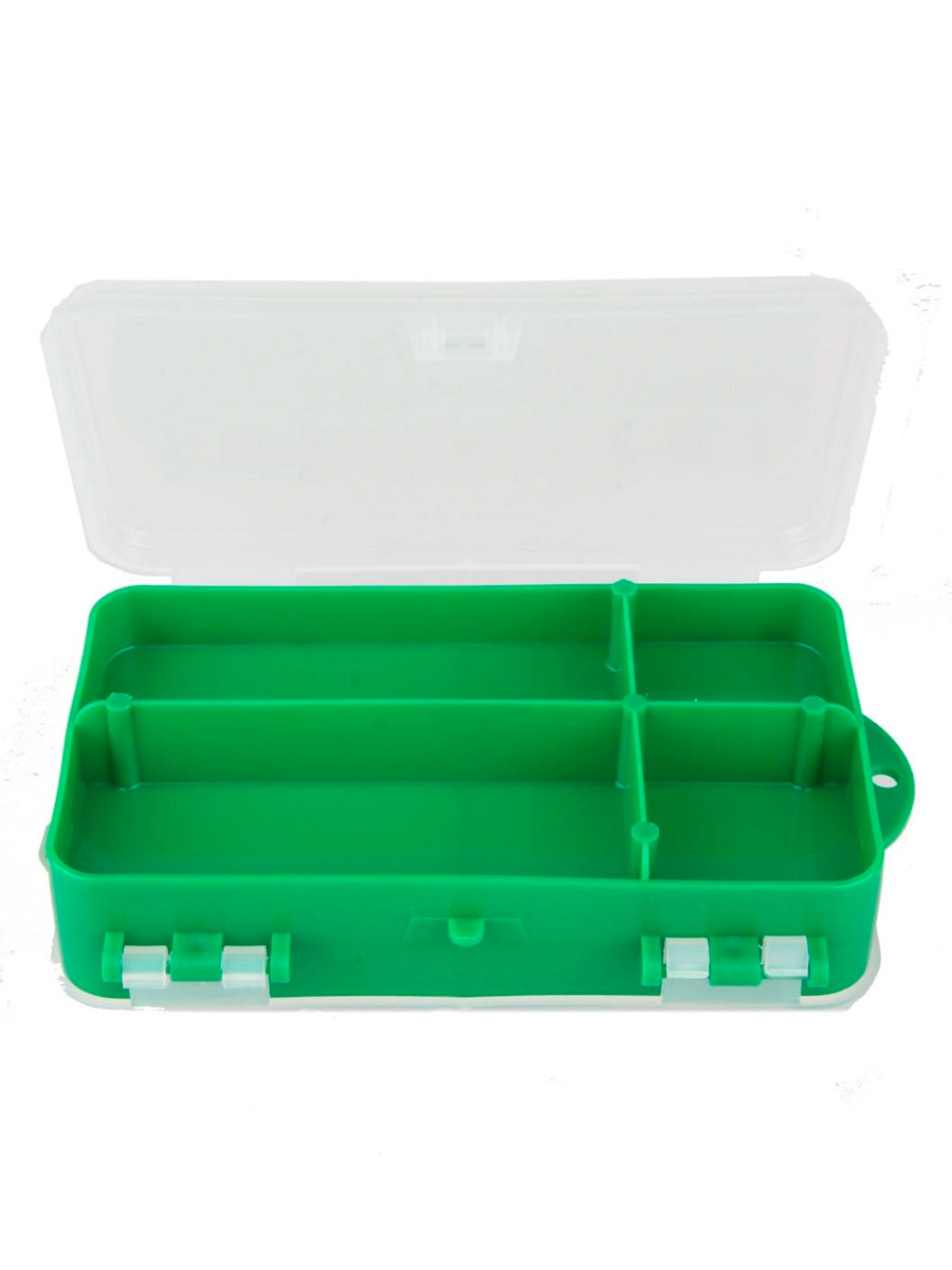 Удобная двухсекционная коробка под снасти, открывается книжкой.