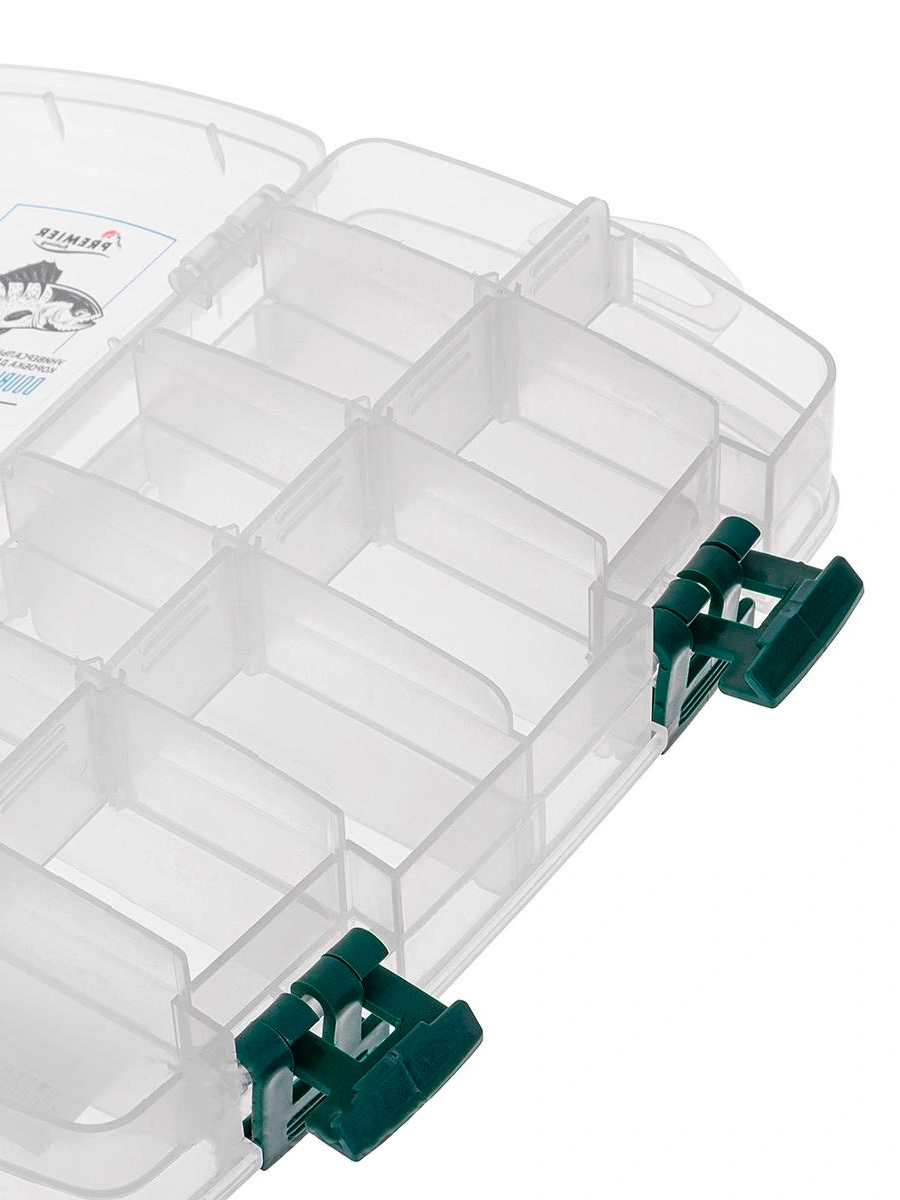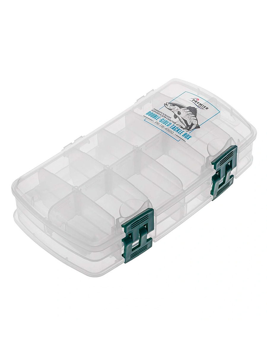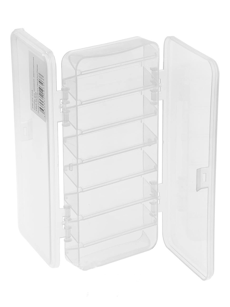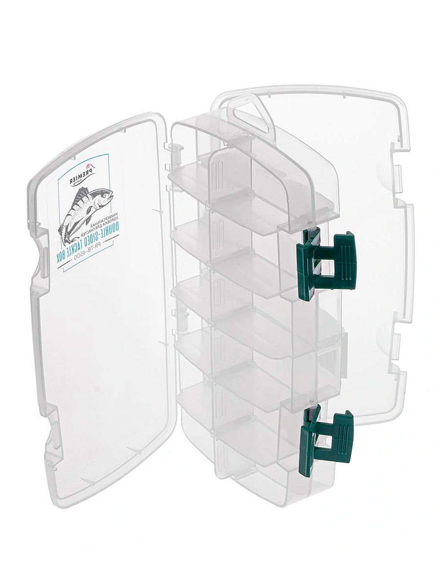 Удобная двухсекционная коробка под снасти, открывается книжкой.