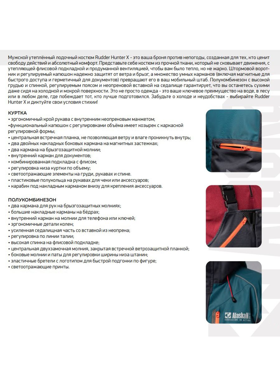 Мужской утеплённый лодочный костюм Rudder Hunter X - это ваша броня против непогоды, созданная для тех, кто ценит свободу действий и абсолютный комфорт. Представьте себе костюм из прочной ткани, который не сковывает движения, с утепляющей флисовой подкладкой и продуманной вентиляцией, чтобы вам было тепло, но не жарко. Штормовой воротник и регулируемый капюшон надежно защитят от ветра и брызг, а множество умных карманов (включая магнитные для быстрого доступа и герметичный для документов) превращают его в ваш мобильный штаб. Полукомбинезон с высокой грудью и спинкой, регулируемым поясом и неопреновой вставкой на седалище гарантирует, что вы останетесь сухими даже сидя на холодной и мокрой поверхности. Это не просто одежда - это ваше ключевое преимущество на воде, в лесу или в любом деле, где побеждает тот, кто лучше подготовился. Забудьте о холоде и неудобствах - выбирайте Rudder Hunter X и диктуйте свои условия стихии!