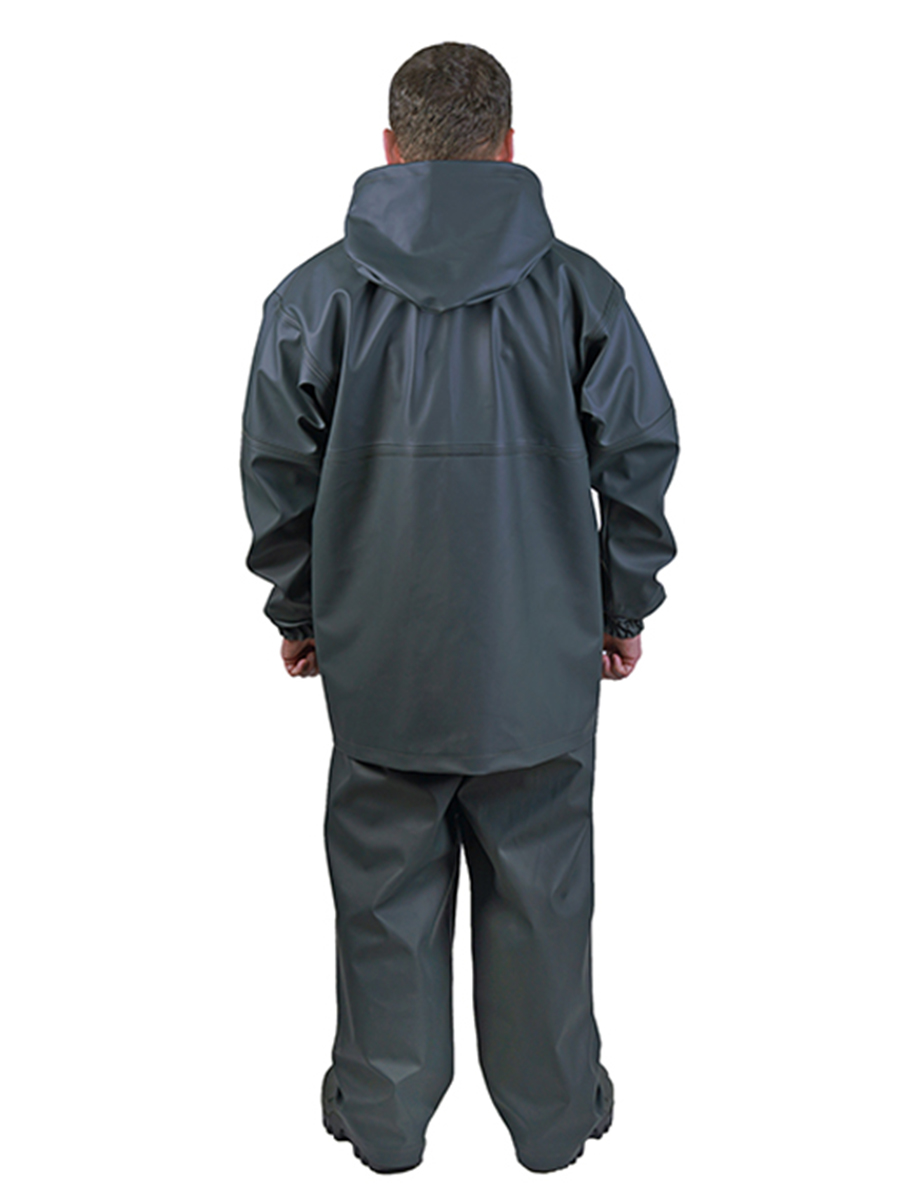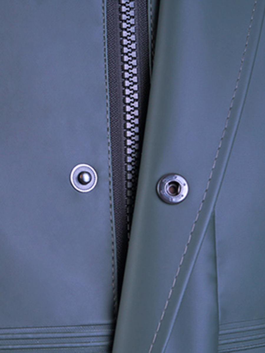 Модель совместила в себе современные решения в сфере рыболовной защитной одежды. Костюм выполнен из эластичной ткани Plastibert (Бельгия) цвета хаки с водонепроницаемостью 17000 мм вод. ст. Внешнее покрытие костюма защищает от грязи и влаги, а также соленой воды и рыбьего жира.