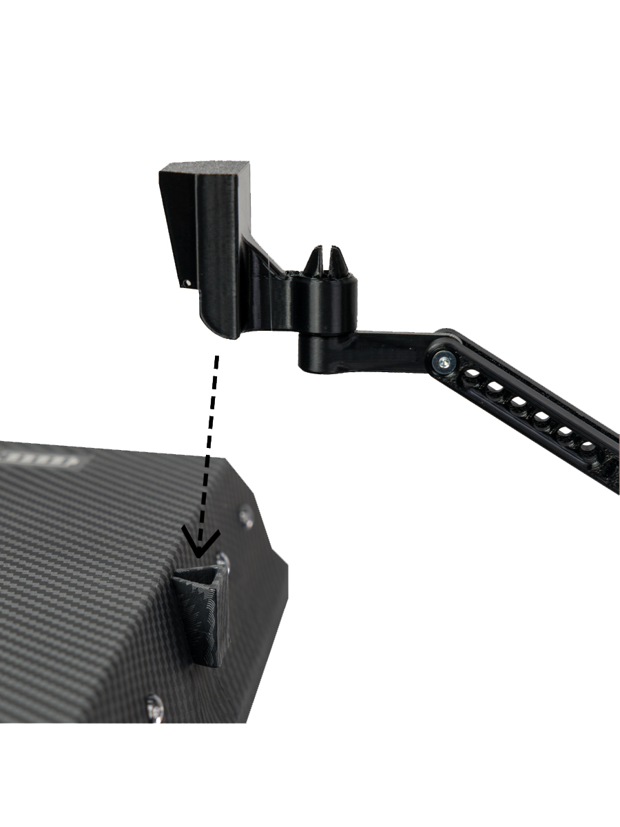 1. Закрепить эхолот в круглом центральном отверстии Эхолодки, установив крепежный язычок эхолота в специальное отверстие.