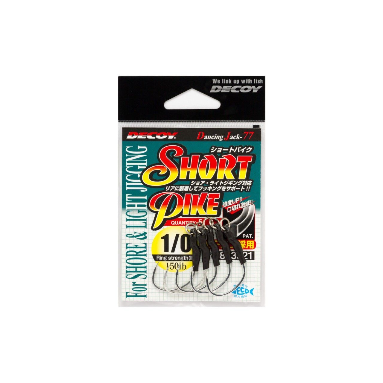 Крючки Decoy DJ-77 Short Pike доступны в четырёх размерах: #1, #1/0, #2/0 и #3/0. В зависимости от размера, в упаковке может быть от 4 до 5 крючков.