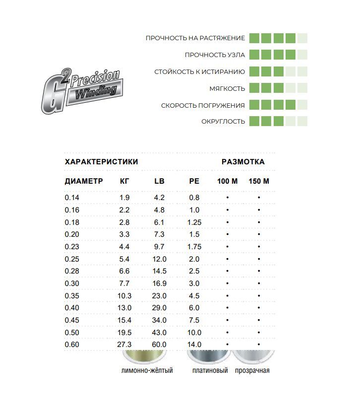 Исключительно мягкая, гладкая и эластичная моноволоконная леска с большим коэффициентом растяжения и узловой прочностью.