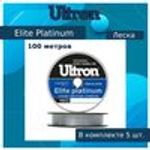 Монофильная леска для рыбалки ULTRON Elite Platinum 0,60 мм, 100 м, 30,0 кг, серебряная, 3 штуки