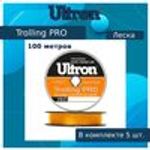 Монофильная леска для рыбалки ULTRON Trolling PRO 0,60 мм, 32,0 кг, 100 м, оранжевая, 3 штуки