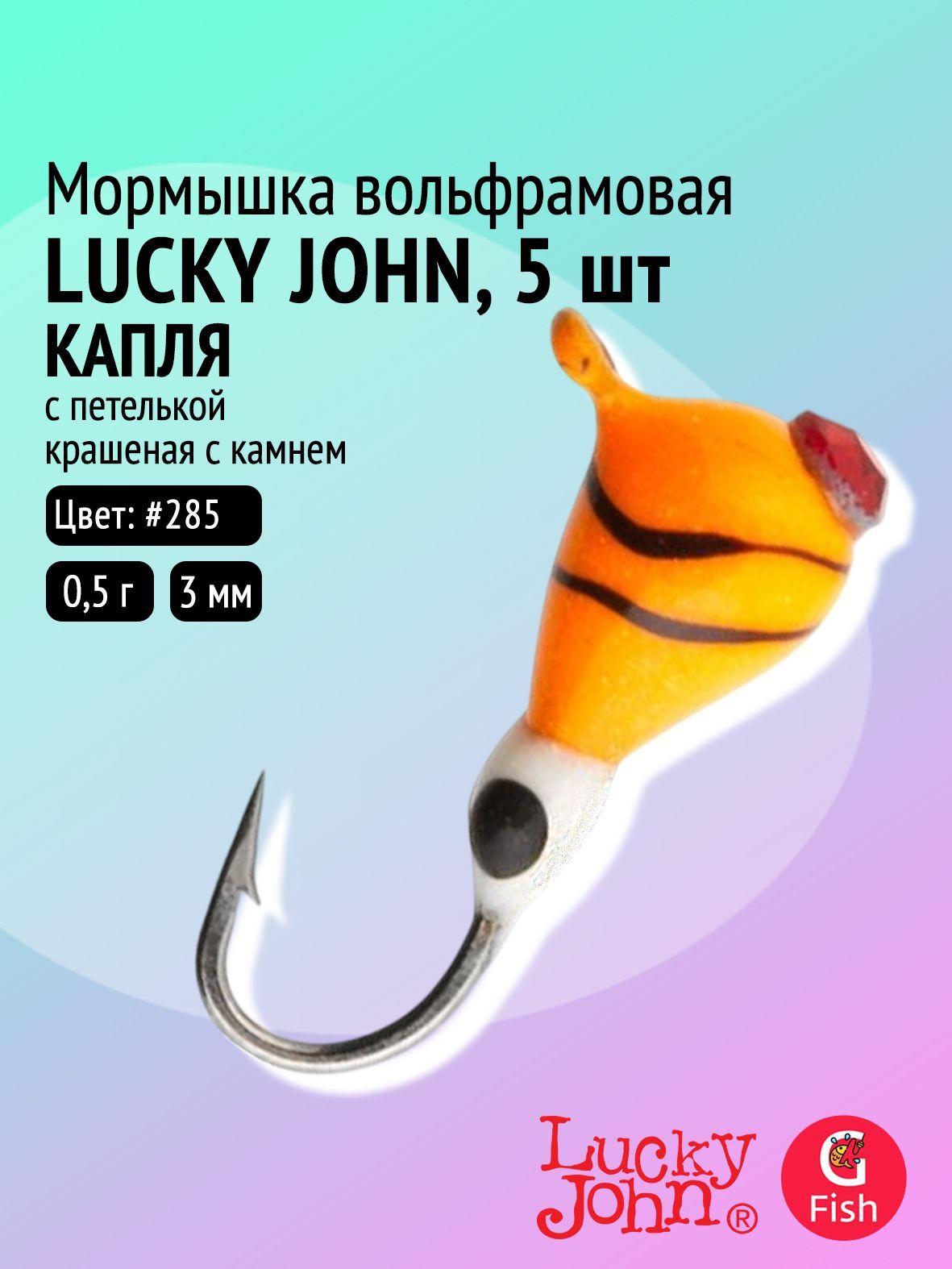 Вольфрамовая мормышка формы "капля" с оригинальным глазком на корпусе для дополнительного привлечения рыбы.
