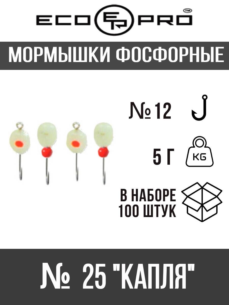 Мормышки ECOPRO фосфорные №25 "Капля" (100шт)