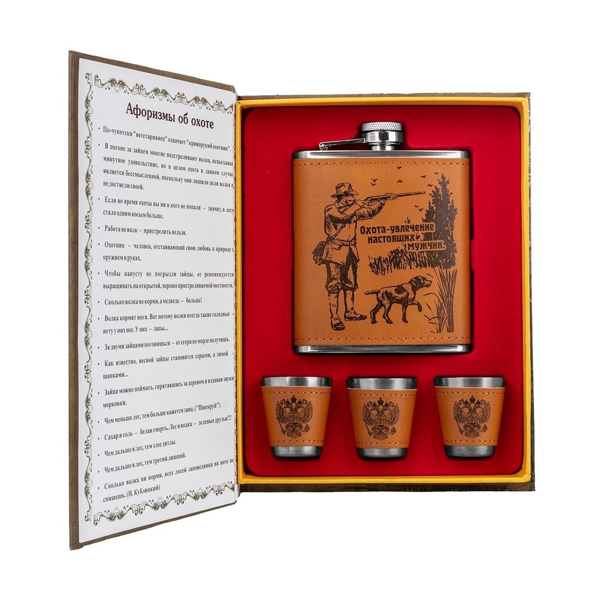 Набор Helios Книга Записки охотника (фляжка 210мл + 3 стопки) (HS-2023-TZ-3)