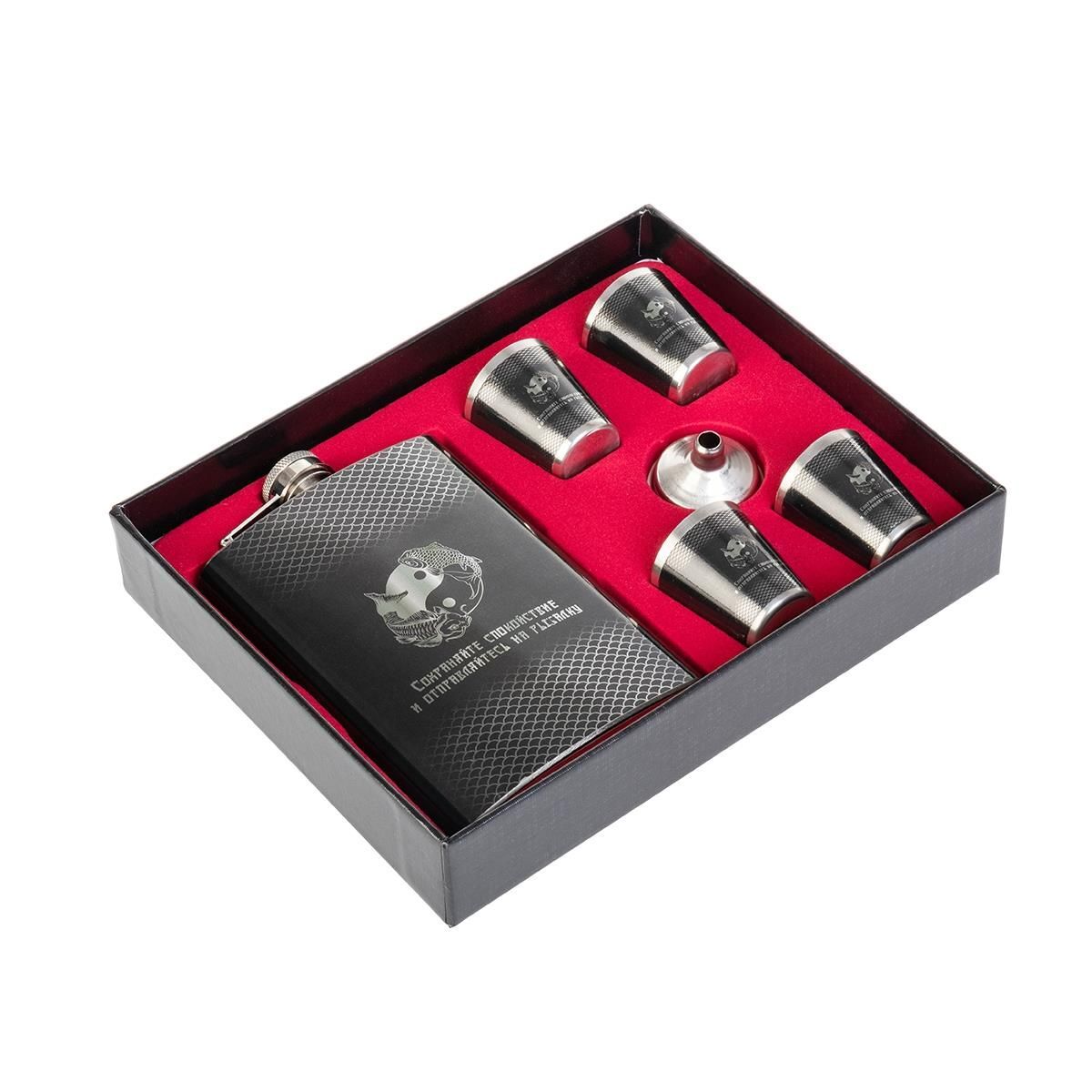 Набор Helios Сохраняйте спокойствие (фляжка 270 мл + 4 стопки+воронка) (HS-2021-A2)