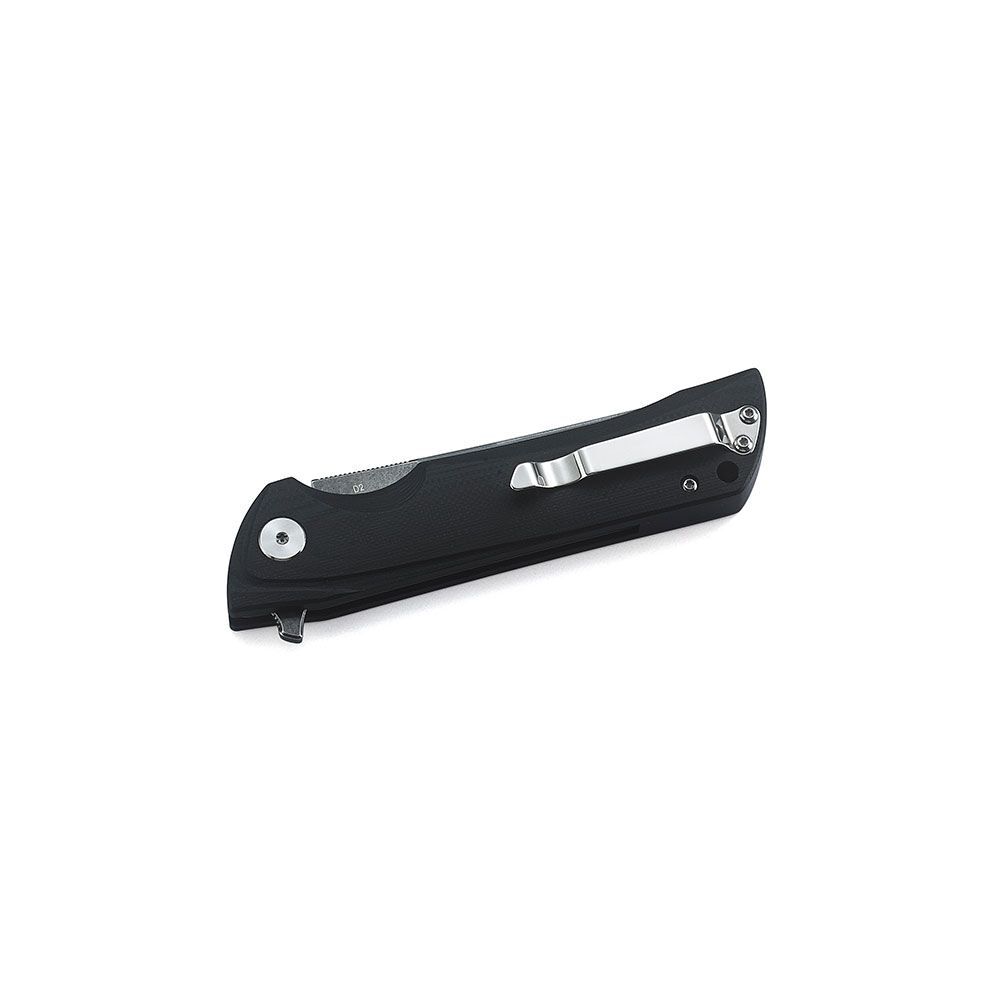 Нож оснащен черной эргономичной рукоятью из прочного стеклотекстолита G10, что обеспечивает надежный и удобный хват. G10 обладает отличной устойчивостью к износу и повреждениям, не боится влаги и воздействия слабых щелочей и кислот.