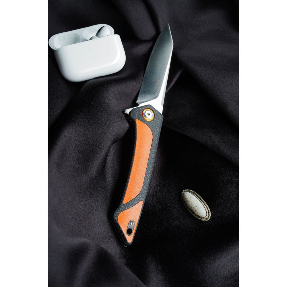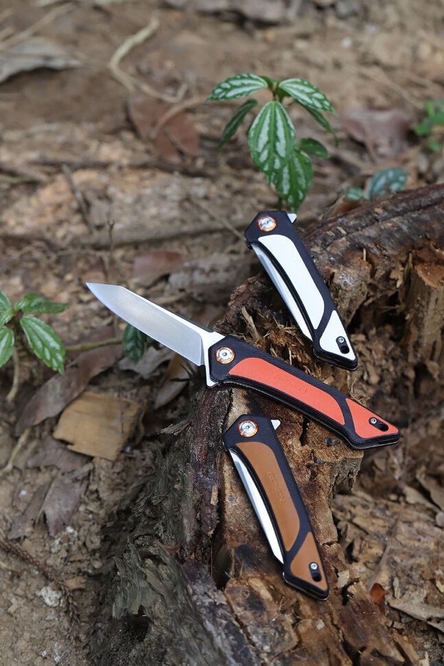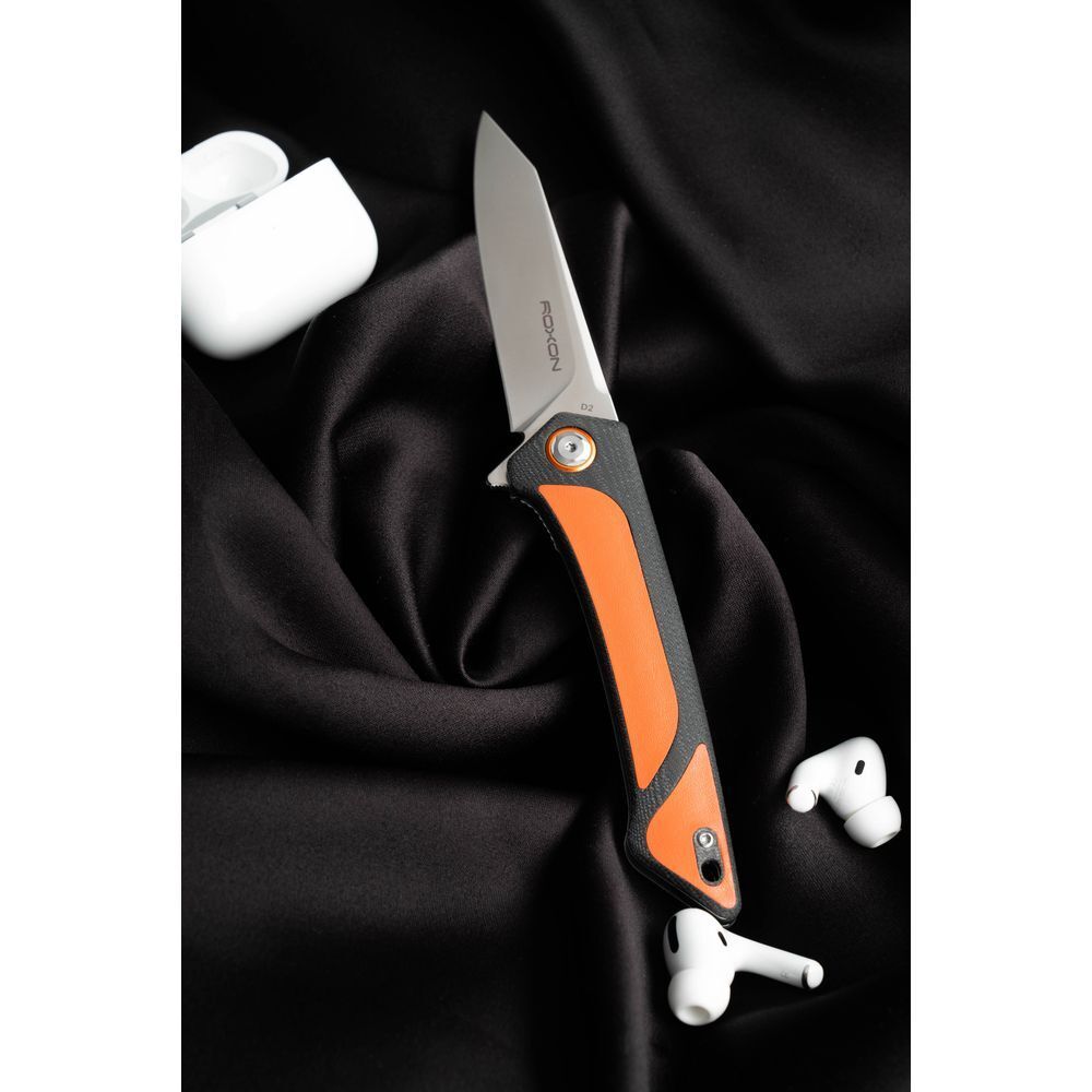 Складной нож Roxon K2 D2 Steel для занятий туризмом и активным отдыхом. Доступен в трёх разных вариантах расцветки: оранжевая, коричневая, белая. Это мощный и острый нож. Удобен в применении. Форма клинка – drop point, напоминает с виду вытянутую каплю. Эта разновидность лезвия считается универсальной – ею легко выполнять самые разные операции, как режущие действия, так и колющие. Что очень кстати во время отдыха на свежем воздухе. Ножом удобно разрезать, стругать, мелко рубить, сдирать что-либо и выковыривать. Таким образом, многие операции облегчаются при помощи всего одного инструмента. Для изготовления лезвия использовали сразу три вида высококачественной стали, а именно: D2.