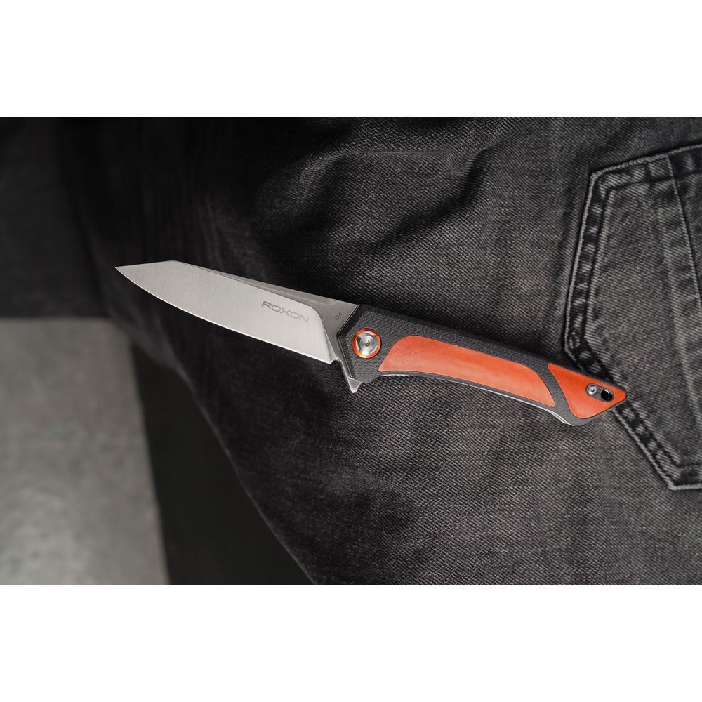 Управлять ножом Roxon K2 D2 Steel тоже сложности не представляет: его можно открывать и закрывать буквально одной рукой. Керамический подшипник придаёт процессу открытия и закрытия лезвия большей плавности. Замок по типу флиппера, безопасное применение. Кроме прочего, нож имеет клипсу – с помощью неё можно закрепить модель на кармане, на поясе или прицепить к сумке, и таким образом транспортировать изделие. Вы не будете бояться потерять свой нож, поскольку он надёжно зафиксирован, и всегда рядом.