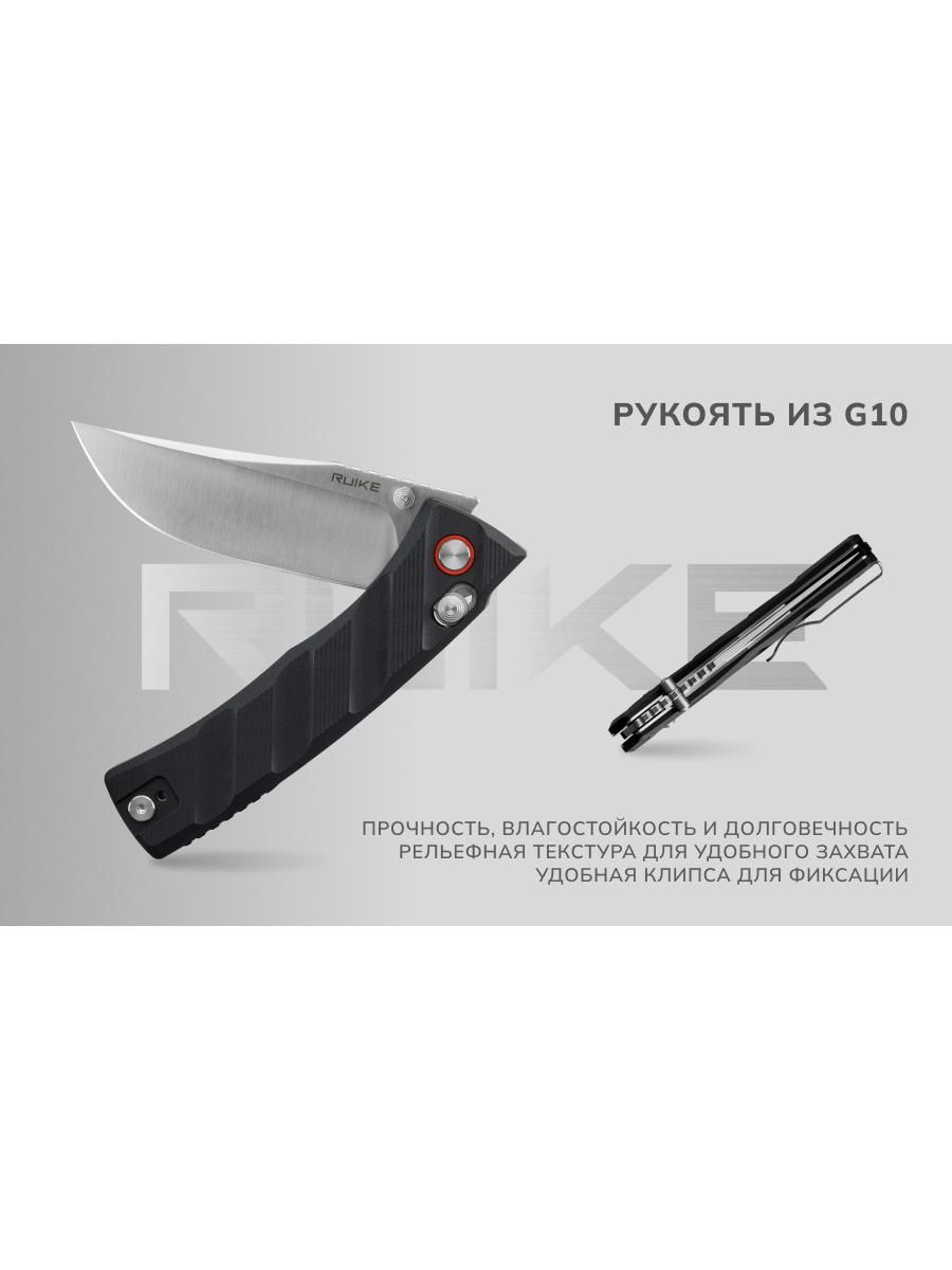 Ruike P856-B — это надежный складной EDC-нож, предназначенный для повседневного ношения, туризма, охоты и рыбалки. Он сочетает в себе функциональность, прочность и компактность, что делает его отличным выбором для активных пользователей, которым важны удобство и надежность в любых условиях.