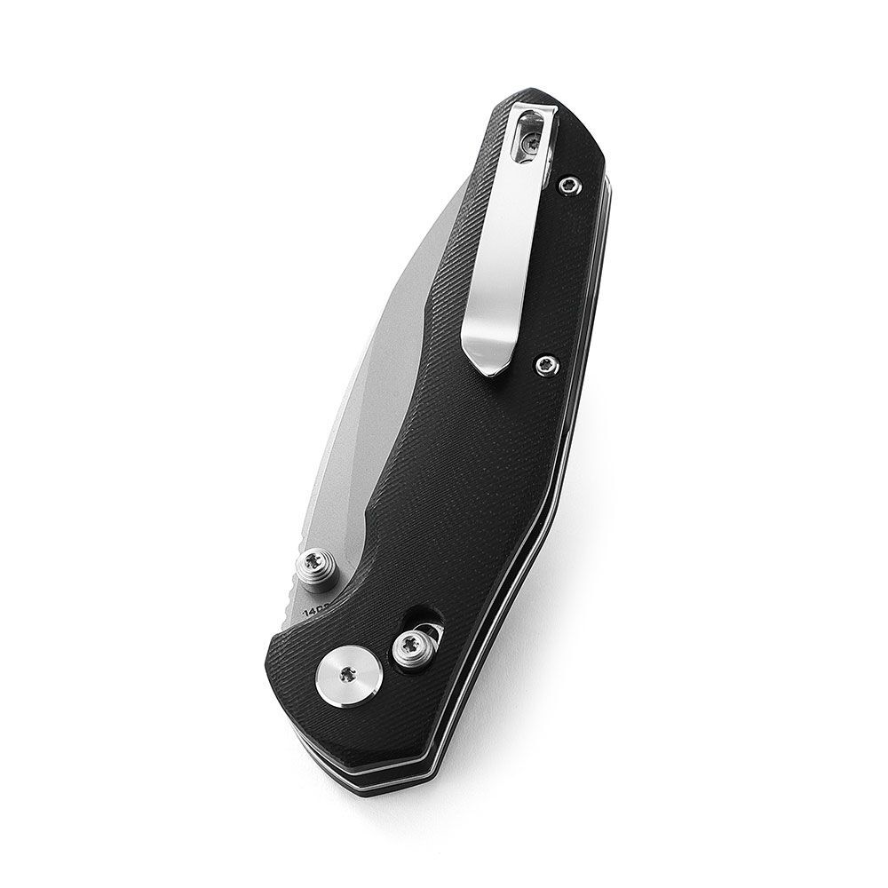Замок b-lock, представляющий собой модификацию axis-lock от компании Bestechman, надежно фиксирует нож в открытом положении. Плавная механика ножа обеспечивается керамическим шарикоподшипником в осевом узле.
