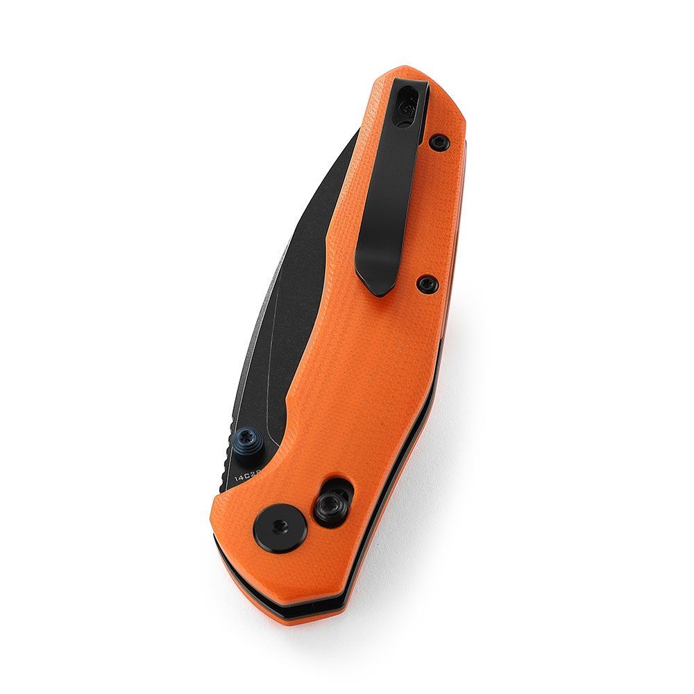 Рукоять ножа Bestechman Ronan выполнена из оранжевого G10, прочного и влагонепроницаемого композитного материала на основе стеклоткани и эпоксидной смолы. Рукоять имеет удобную форму с выемками под пальцы и внушительным упором, который защищает руку от соскальзывания на режущую кромку. Также рукоять оснащена удобной клипсой типа mini deep.